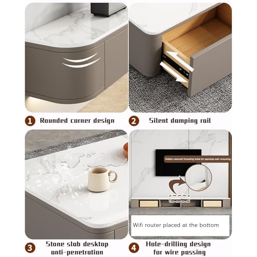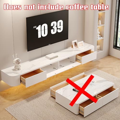 Floating TV Stand, Modern Wall-Mounted TV Console, 94'' Assembly-Free White Stone Entertainment Centers with 2 Drawers & Flip-Down Door, for Living Room Bedroom(120CM/47.2")