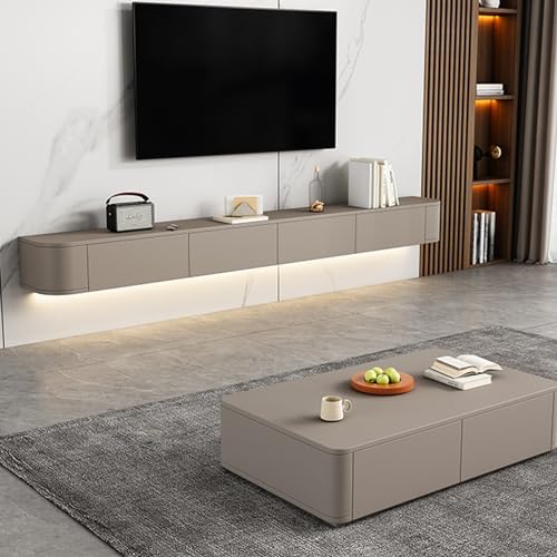 Floating TV Stand Unit 120/180/240/300cm Wall Mounted TV Cabinet with Door Floating TV Cabinet Large Storage TV Bench for Living Room(Black,300x20x24CM)