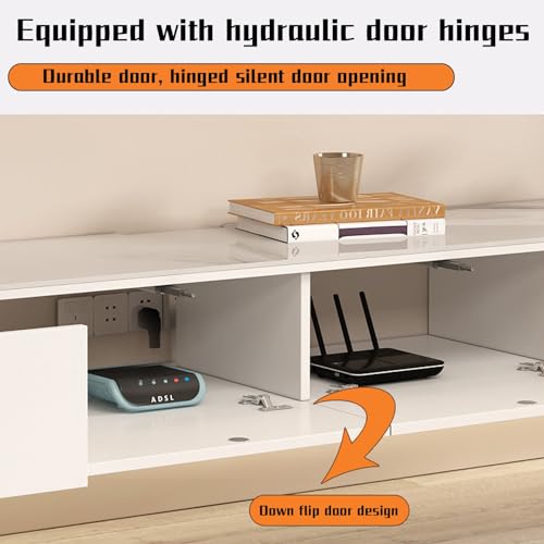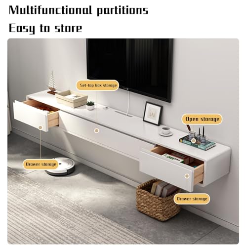180/200/300CM TV Cabinet, Floating Shelves with Door & Drawers, Modern Entertainment Media Console Center Large Storage TV Bench(White,160x20x24CM)