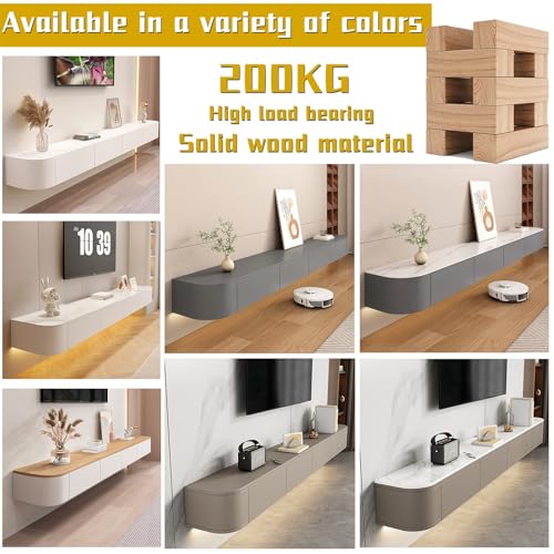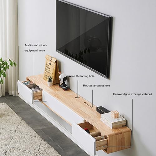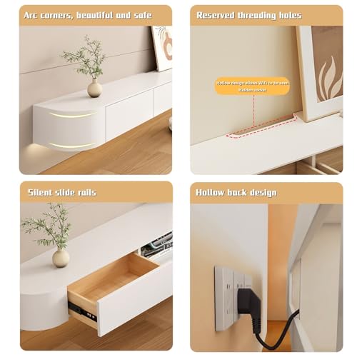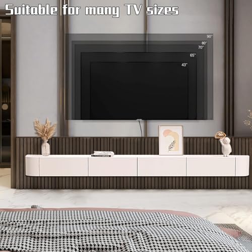 Floating TV Stand, 94 Inch Modern TV Stand with 2 Drawers, Black TV Stand, Solid Wood Floating Entertainment Center, Minimalist TV Console(White,120CM/47.2")
