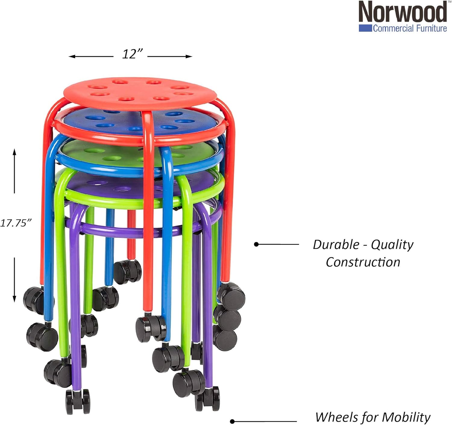 Norwood Commercial Furniture Colorful Mobile Stacking Stools with Wheels - Stackable Nesting Stools for Kids- Portable Flexible Seating for Home, Office, Classrooms - Plastic/Metal 17.75" (Pack of 4)