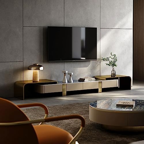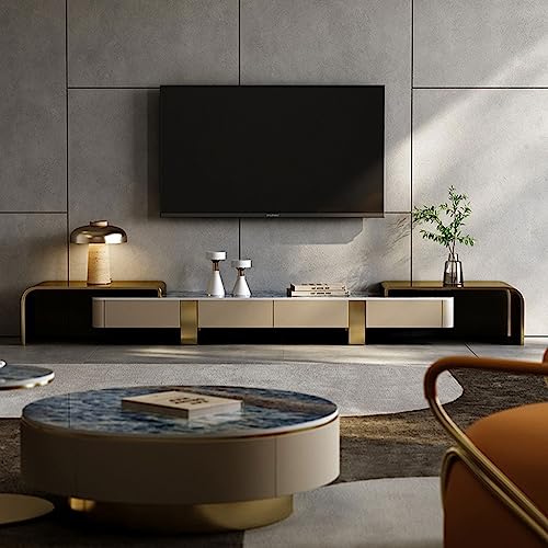 Tv Stand Tv Table Stand Slate Countertop TV Cabinet Living Room 72.8"-110" Expandable TV Cabinet Modern Entertainment Center with 4 Drawers Tv Stands for Living Room