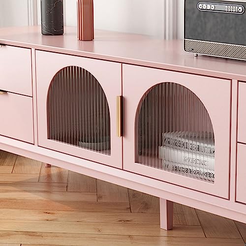 Tv Stand Tv Table Stand Multifunctional TV Cabinet Living Room Modern Media Entertainment Center with 4 Drawers and 2 Glass Cabinet Doors Tv Stands for Living Room(Customization)
