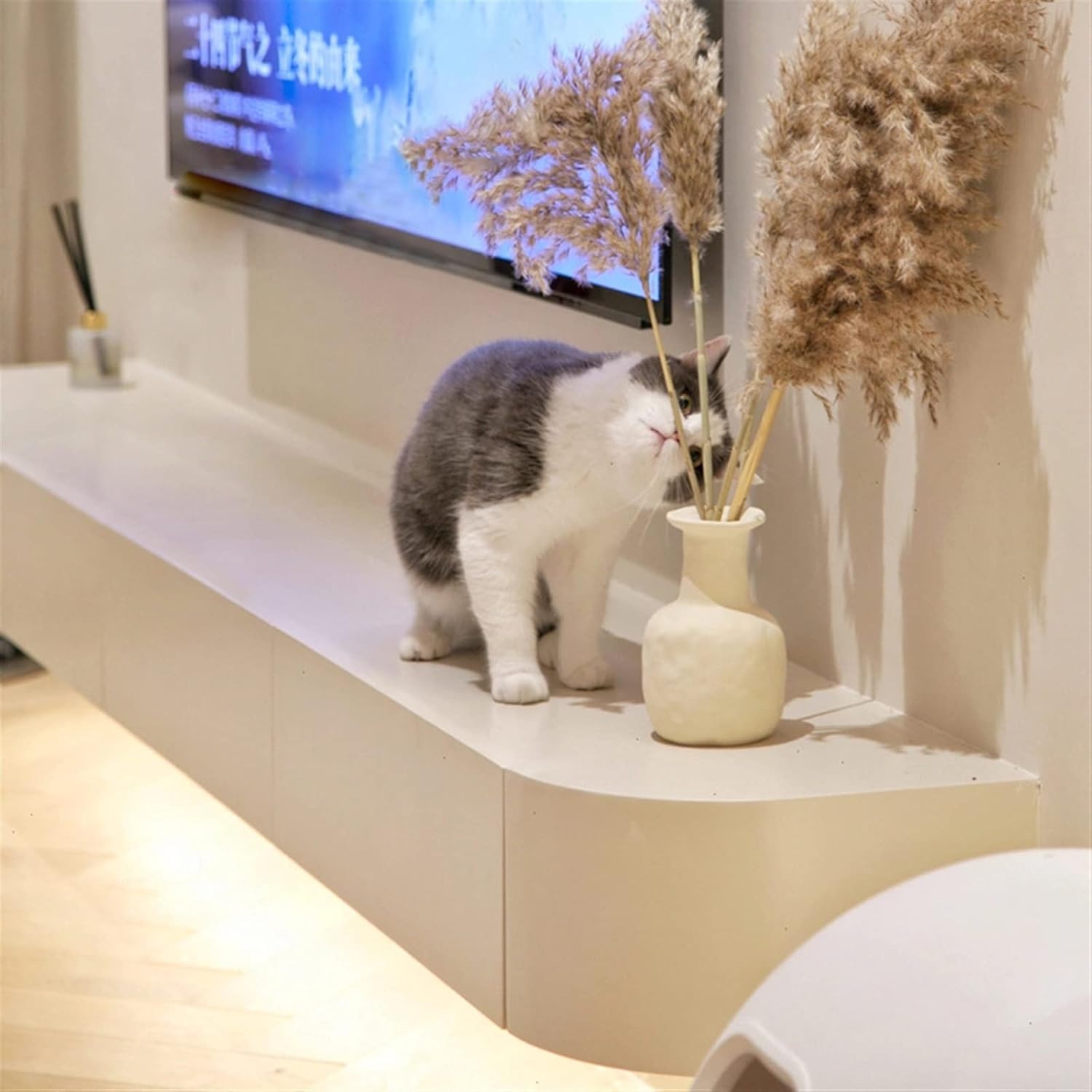 Tv Cabinet Suspended TV Cabinet, Light and Luxurious, Wall Mounted, Arc Shaped TV Cabinet, Simple and Minimalist TV Cabinet