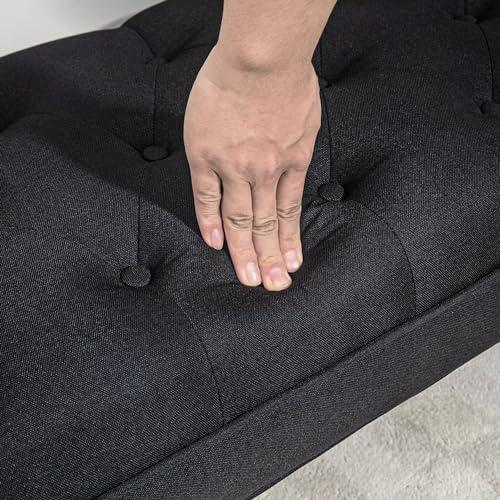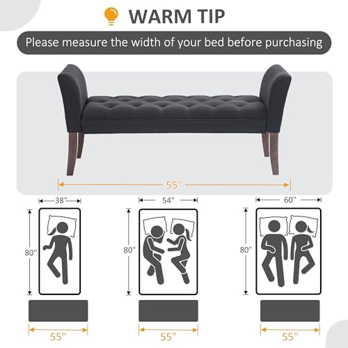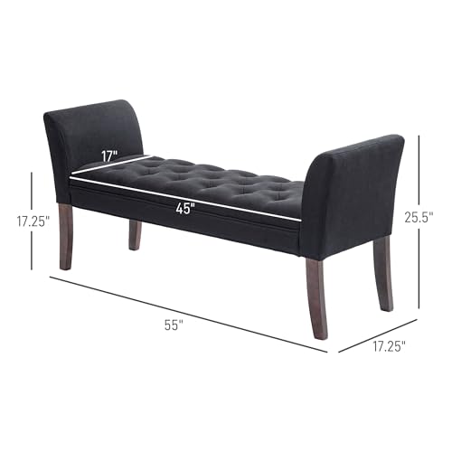 HOMCOM End of Bed Bench with Button Tufted Design, Upholstered Bedroom Entryway Bench with Arms and Solid Wood Legs for Bedroom, Black