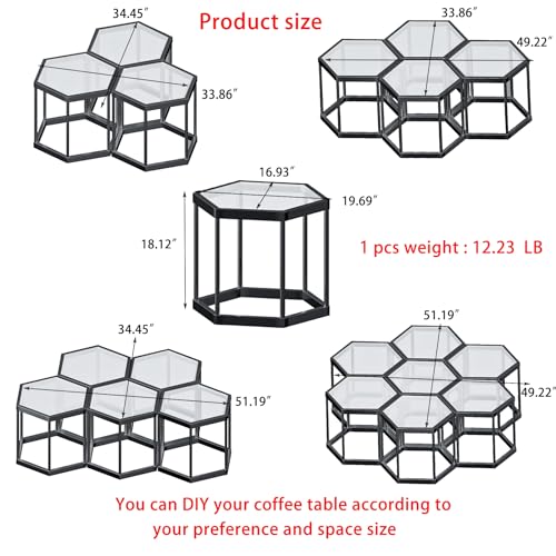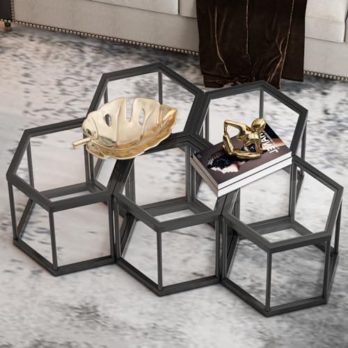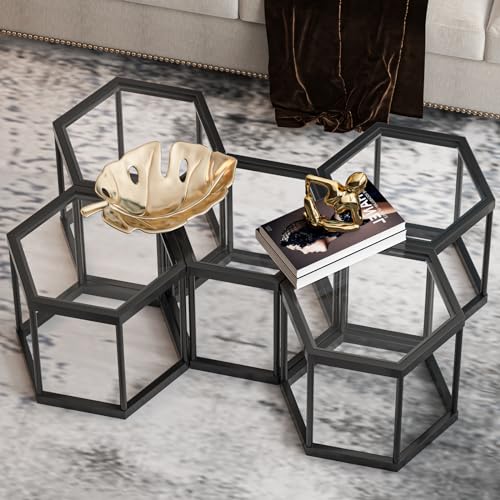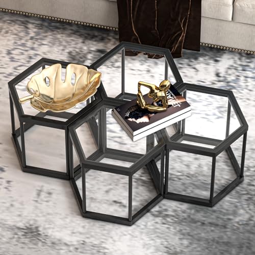 Coffee Table Glass Modern Coffee Table, Hexagon Free Combination Glass Center Table Small End Tables with Metal Frame for Living Room Set of 1