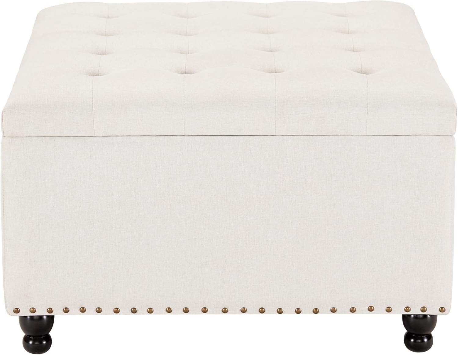 Large Square Tufted Upholstered Ottoman Bench and Coffee Table with Storage, Oversized Footrest for Living Room, Beige