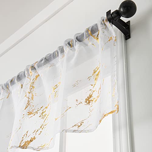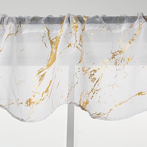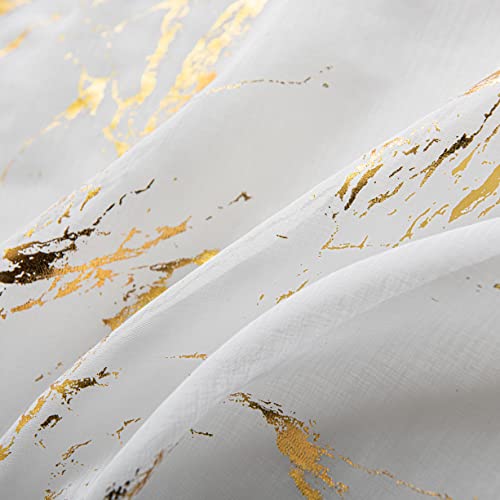 Sutuo Home Marble Sheer Curtains 63 Inch Length 2 Panels Set, Gold Foil Print Metallic Bronzing, Privacy Window Treatment Abstract Drape Pair for Bedroom Kitchen Living Room 52" W x 63" L, Navy Blue
