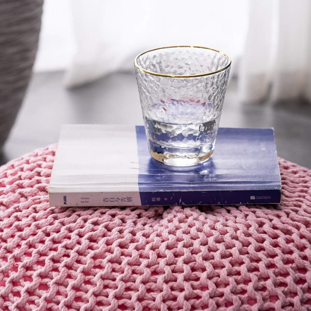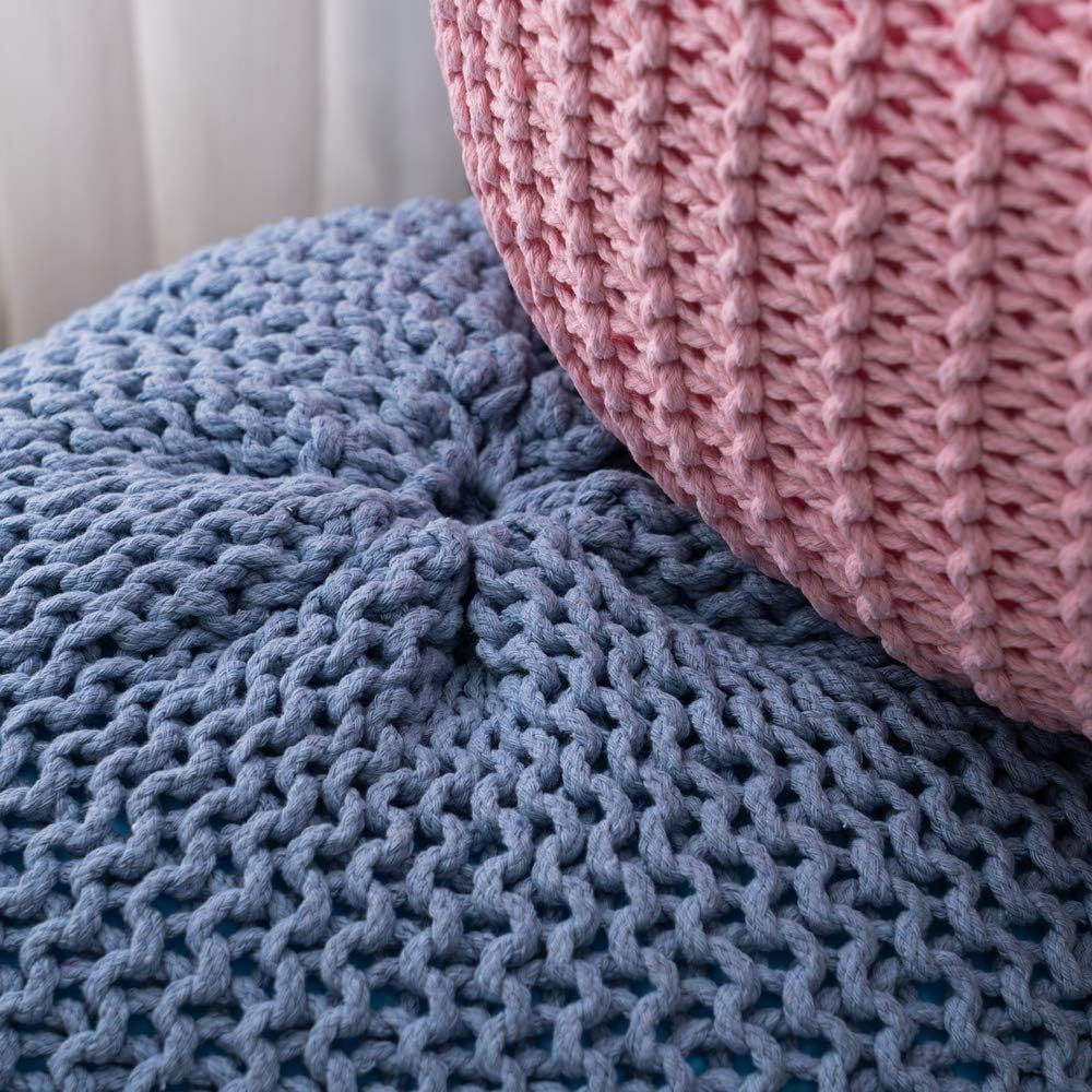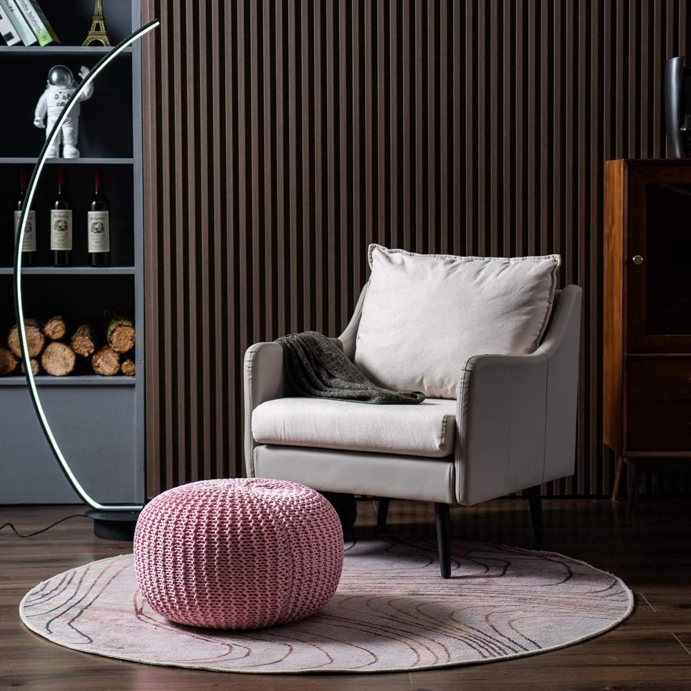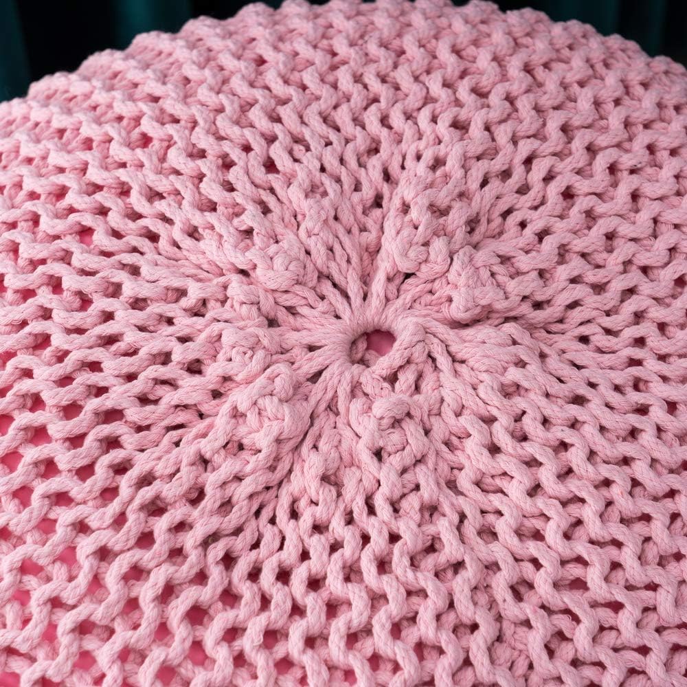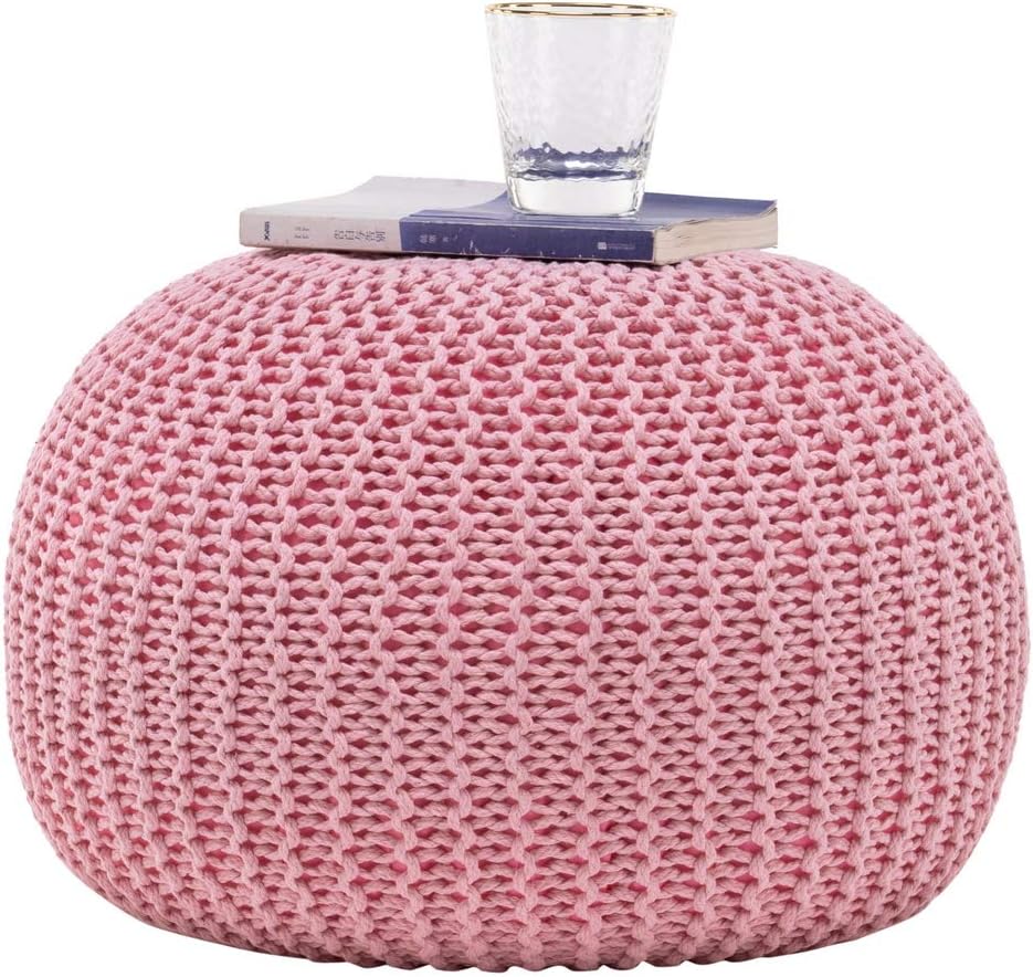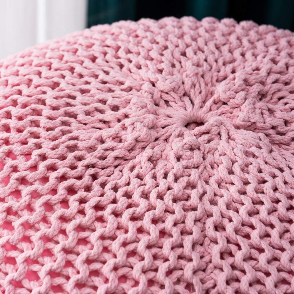 US Hand-Woven Sofa Footstool, Futon, Seat for Bedroom, Living Room, Gift for Women, Girl, Mom, (50 * 50 * 35cm) (Pink)