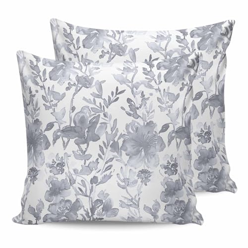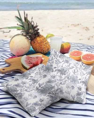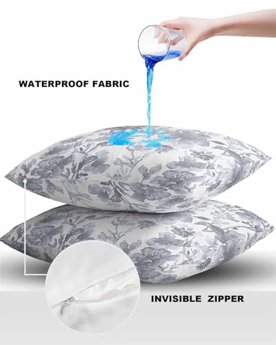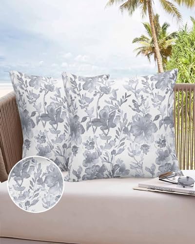 ALAGEO Outdoor Waterproof Pillow Covers for Patio Furniture Watercolor Flower Decorative Throw Pillow Cover Gray Floral Plant Pillowcases Set of 2 Cushion Case for Sofa Couch Home Decor 26x26 inch