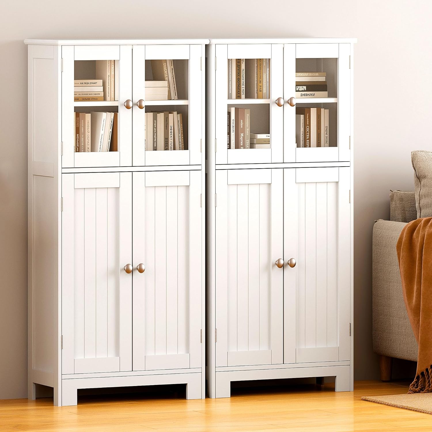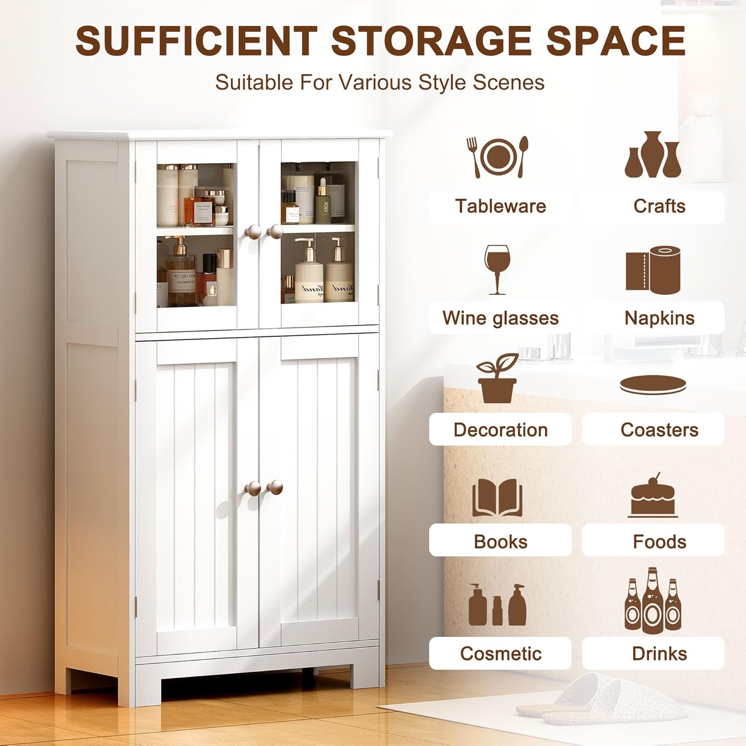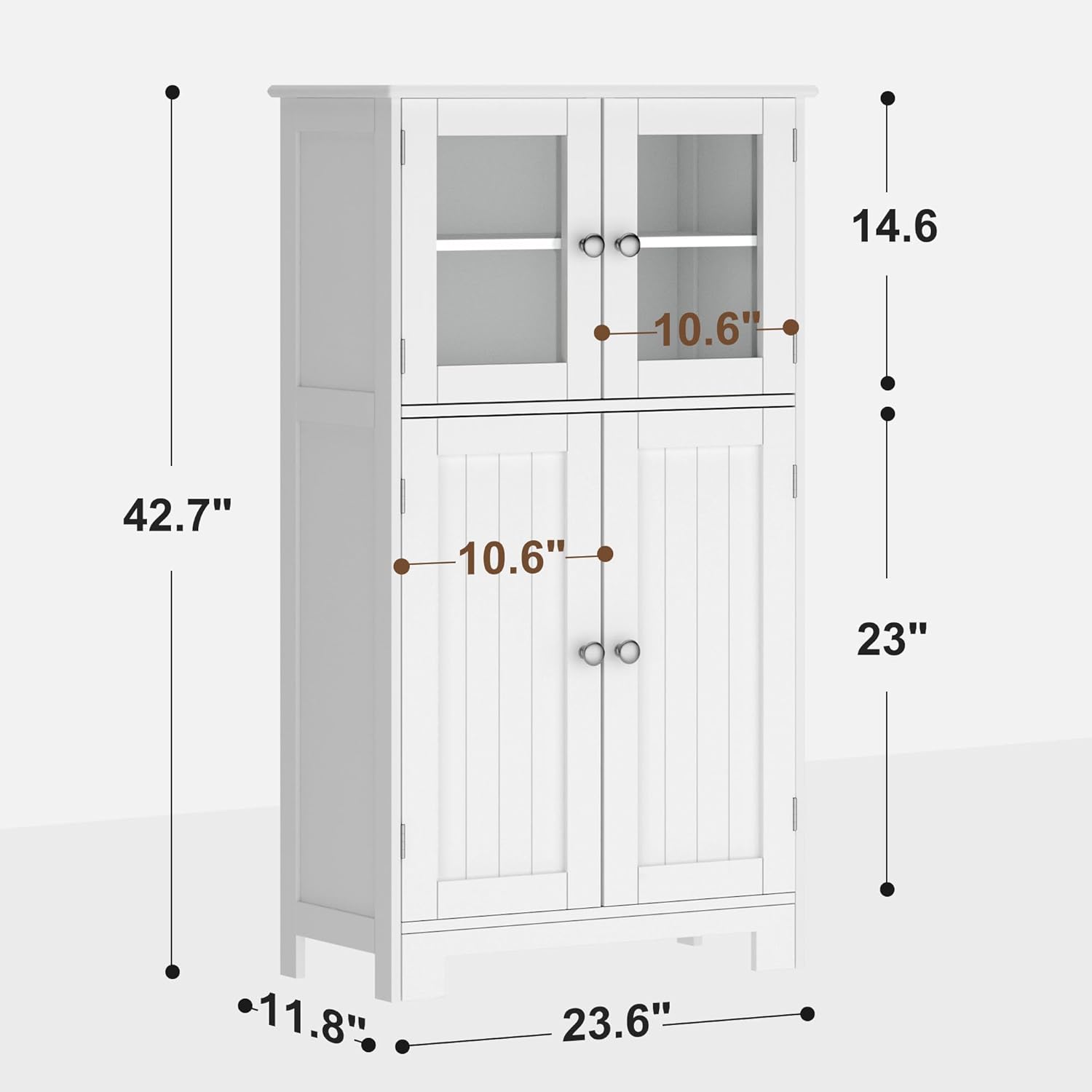 sogesfurniture 42.9" Pantry Storage Cabinet, Kitchen Pantry Storage Cabine, Freestanding Pantry Cabinet with Glass Doors and Adjustable Shelf, Freestanding Bathroom Cabinet for Living Room, Kitchen