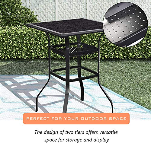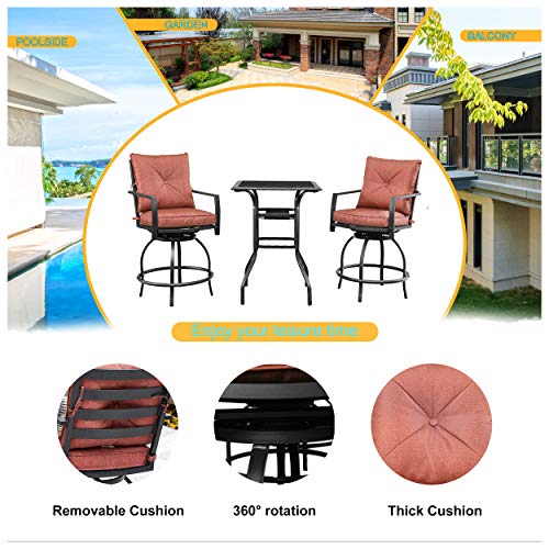 LOKATSE HOME Bar Outdoor Bistro Set Balcony Height Patio Furniture Hightop Stools Counter Swivel Pub Chairs with Glass Top Table, Beige