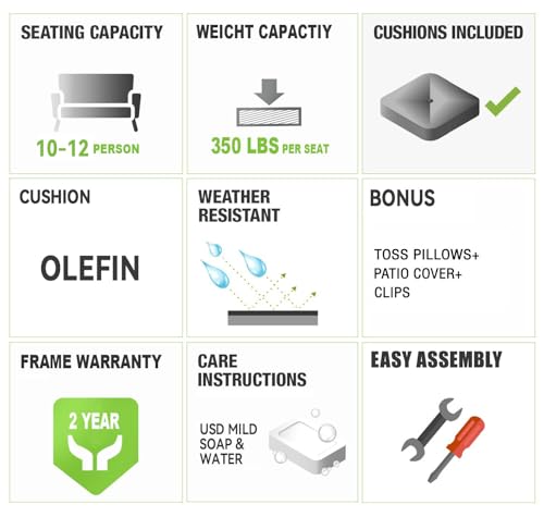 RSH DECOR: Sunbrella Deep Seating Loveseat Cushion Set | 46” x 26” Loveseat | Performance Fabric | Outdoor Foam Settee and Pillow Back Cushions for Patio Furniture | Brannon Whisper