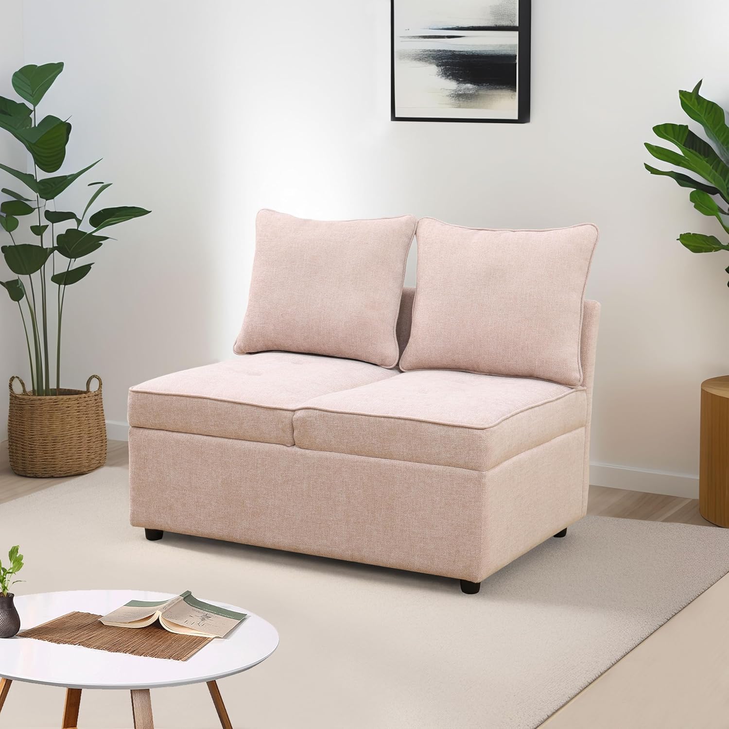 Folding Sofa Bed with Storage Ottoman for Living Room Bedroom, Standard Size, Pink Sackcloth Living Room Adjustable Wedge