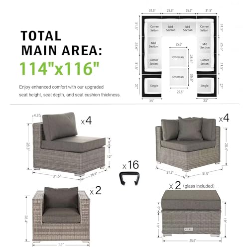SUSIE'S GARDEN Patio Furniture Set 11 piece Wicker Outdoor Furniture Sectional 6 Inch Thick Cushion Outdoor couch Deep Seating w/Free Raincovers,Pillows for Porch, Balcony, Brown & Beige