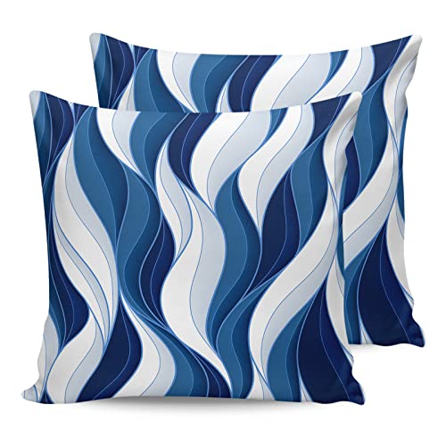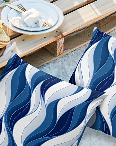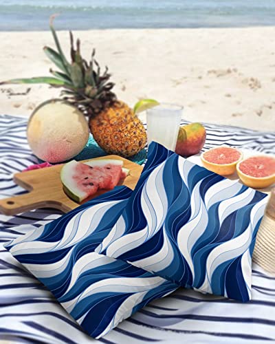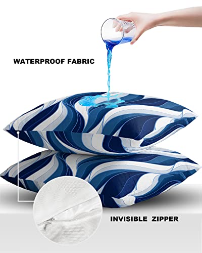 Outdoor Pillow Covers 26 x 26 Inches, Navy Blue Geometric Waterproof Throw Pillow Cover Set of 2, Modern White Moire Abstract Art Home Decorative Square Cushion Covers for Patio/Tent/Couch/Garden