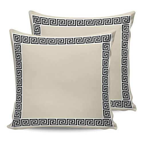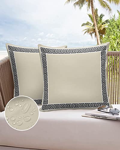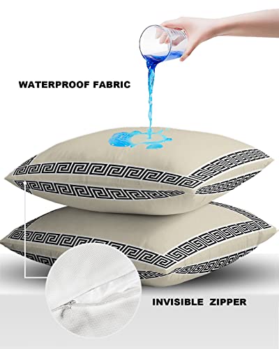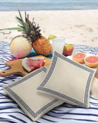 Outdoor Waterproof Pillow Covers for Patio Furniture Geometric Greek Key Design Decorative Throw Pillow Cover Navy Blue Pillowcases Set of 2 Cushion Case for Sofa Couch Chair Home Decor 26x26 inch