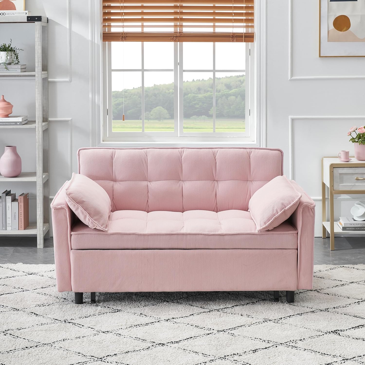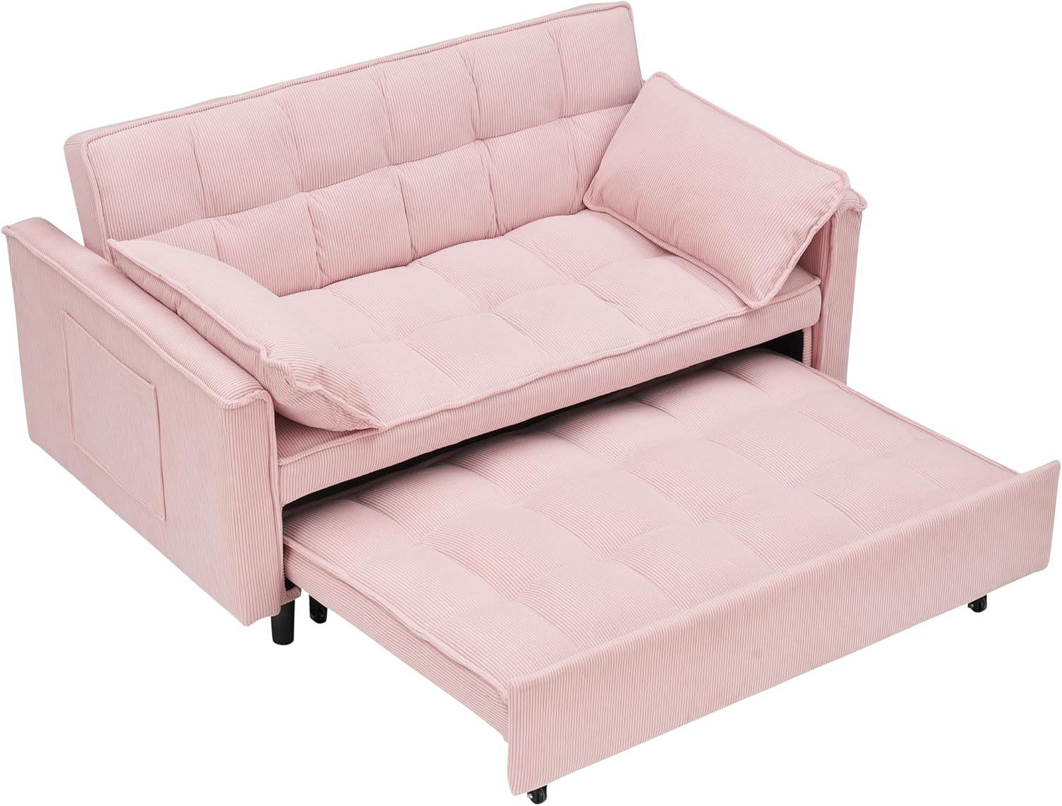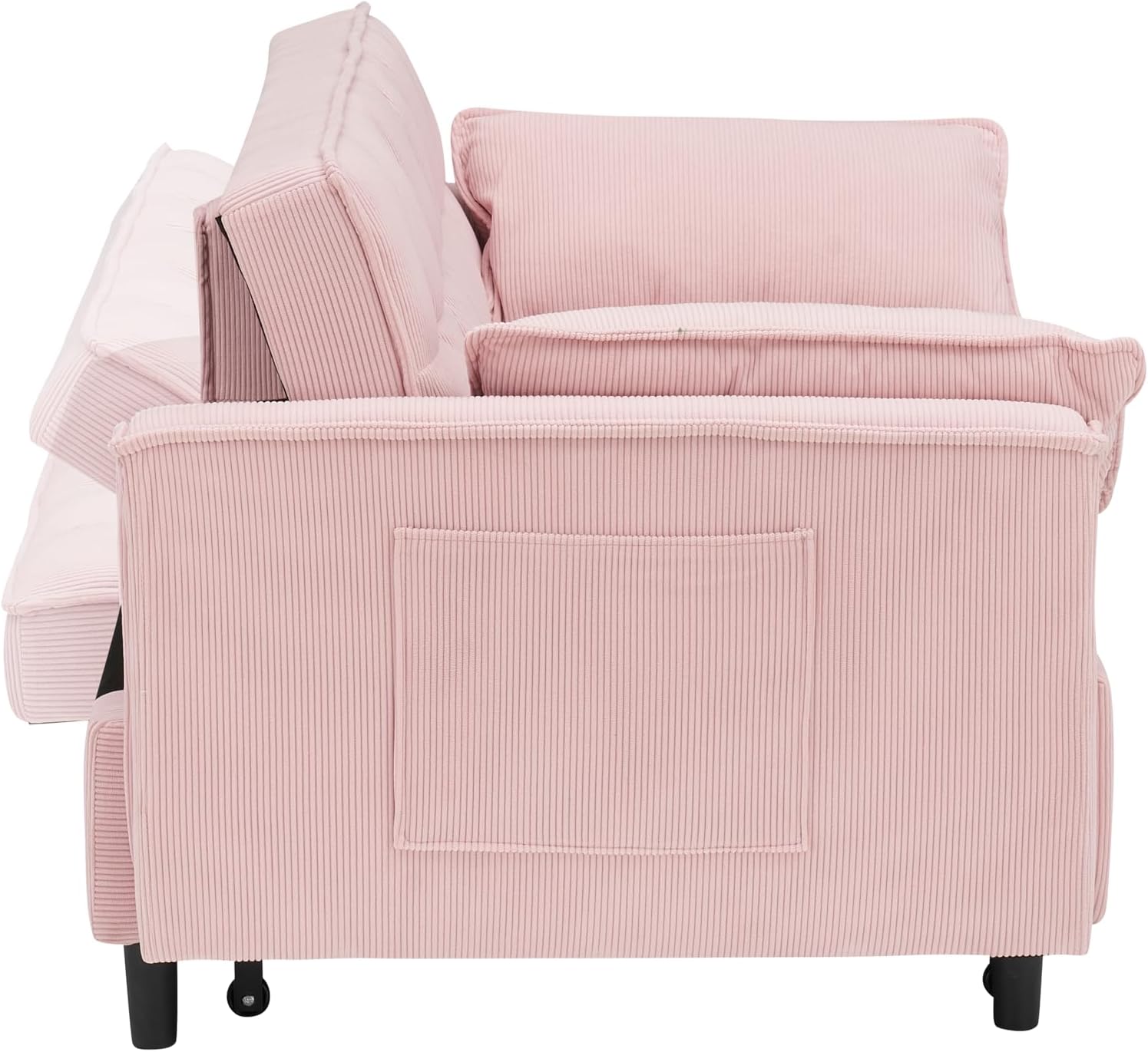 Sleeper Couch, 3 in 1 Convertible Modern Sofa Bed,Pull Out CouchBed Daybed with Adjustable Backrest & Storage Pocket & Pillow for Living Room Bedroom,Pink