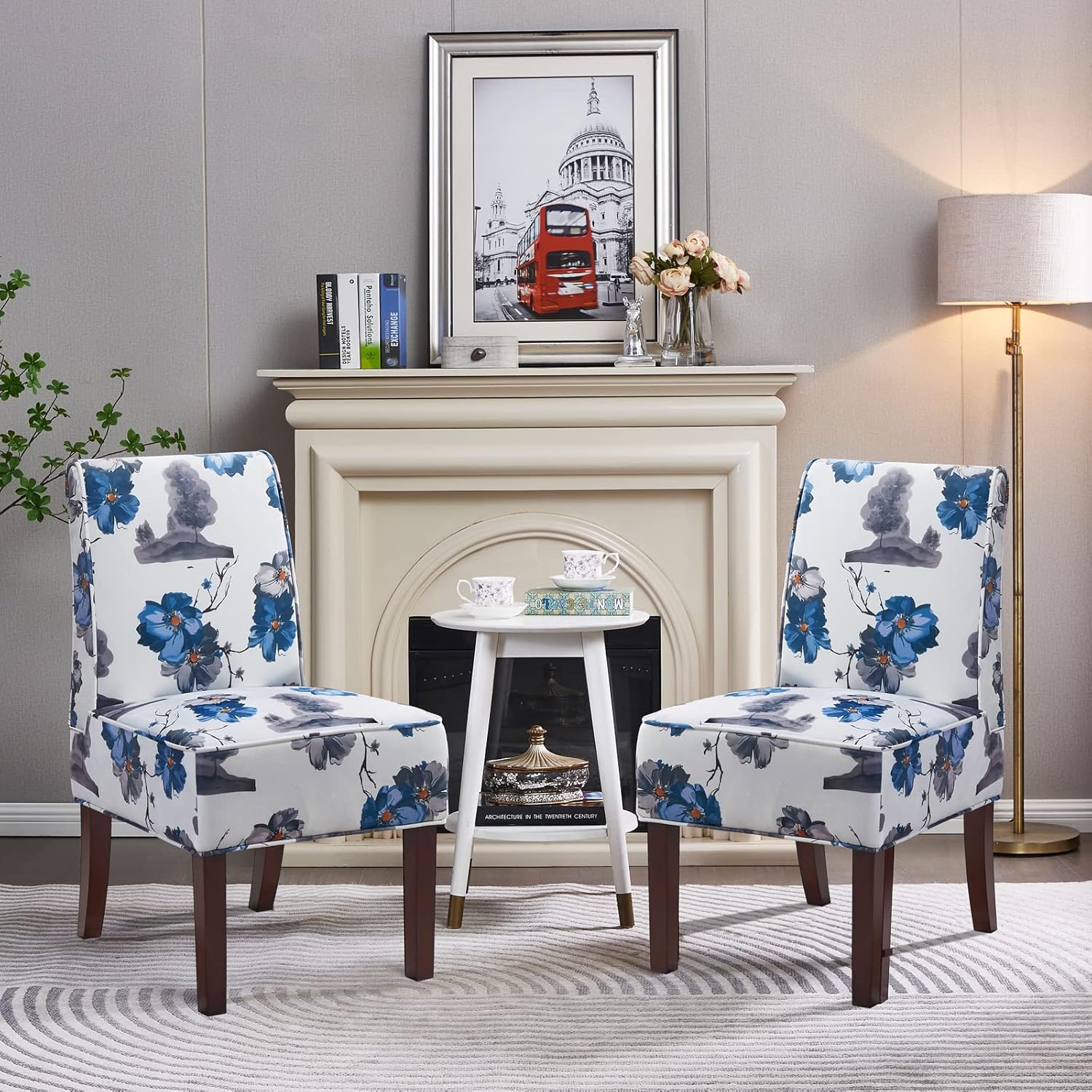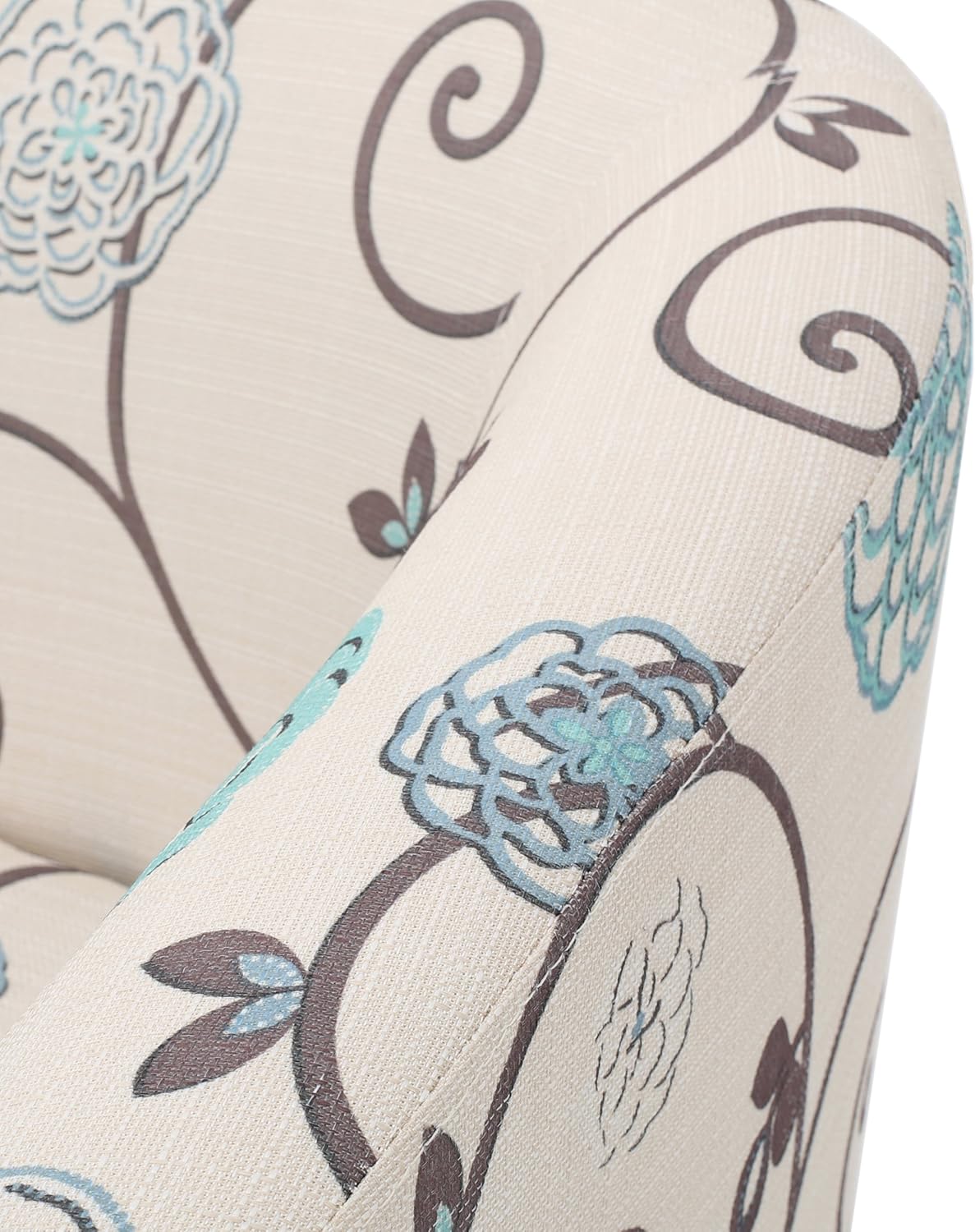 GDFStudio Barrel Fabric Club Chair White and Blue Floral Pattern