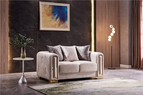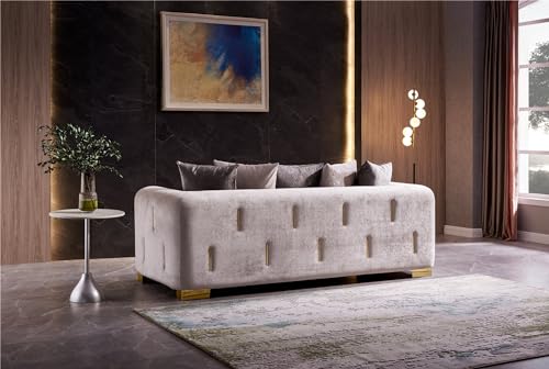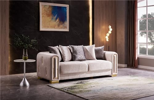 Luxurious Living Room Set with Gold-Finish Birch Wood Frames and Sumptuous Velvet, Crafted for Comfort and Elegance with Detailed Arm and Back Accents, Perfect for Elegant Home (Silver,Loveseat+Couch)