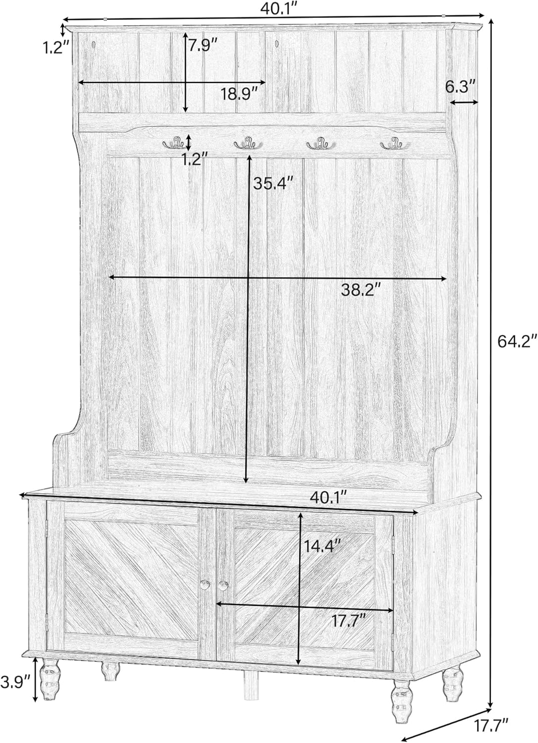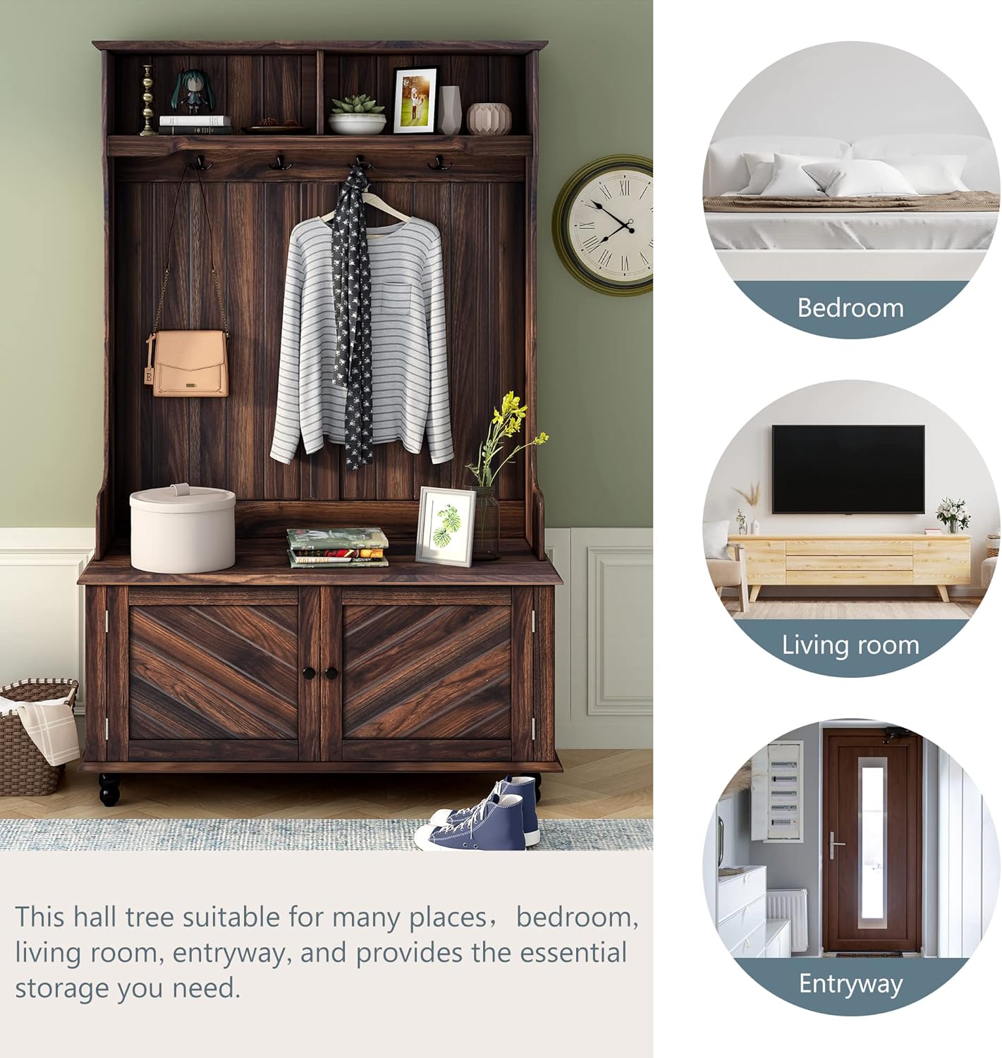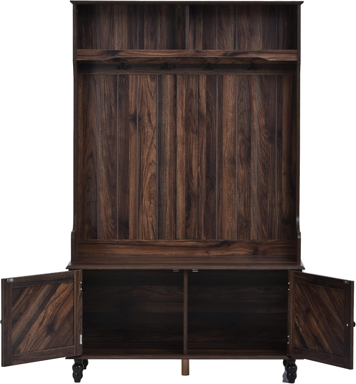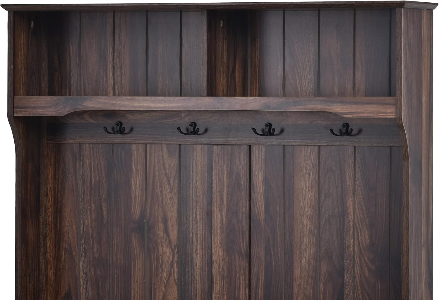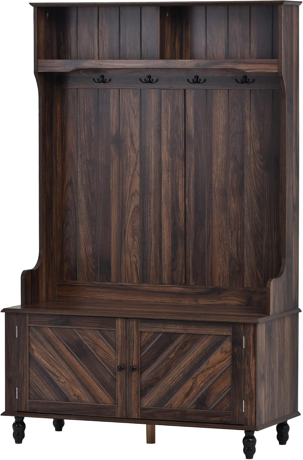 40 Inch Brown Entryway Hall Tree with Storage Bench, 3-in-1 Coat Rack with 4 Metal Hooks for Hallway, Mudroom, Living Room