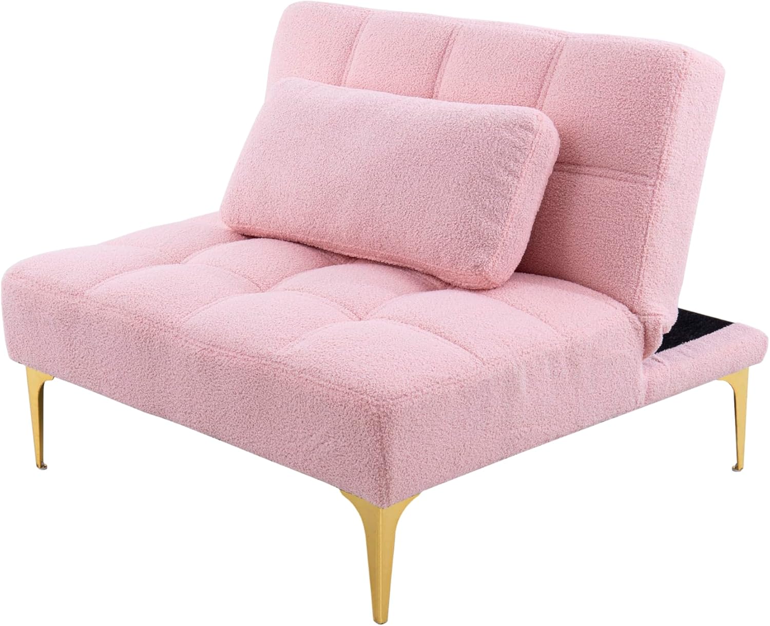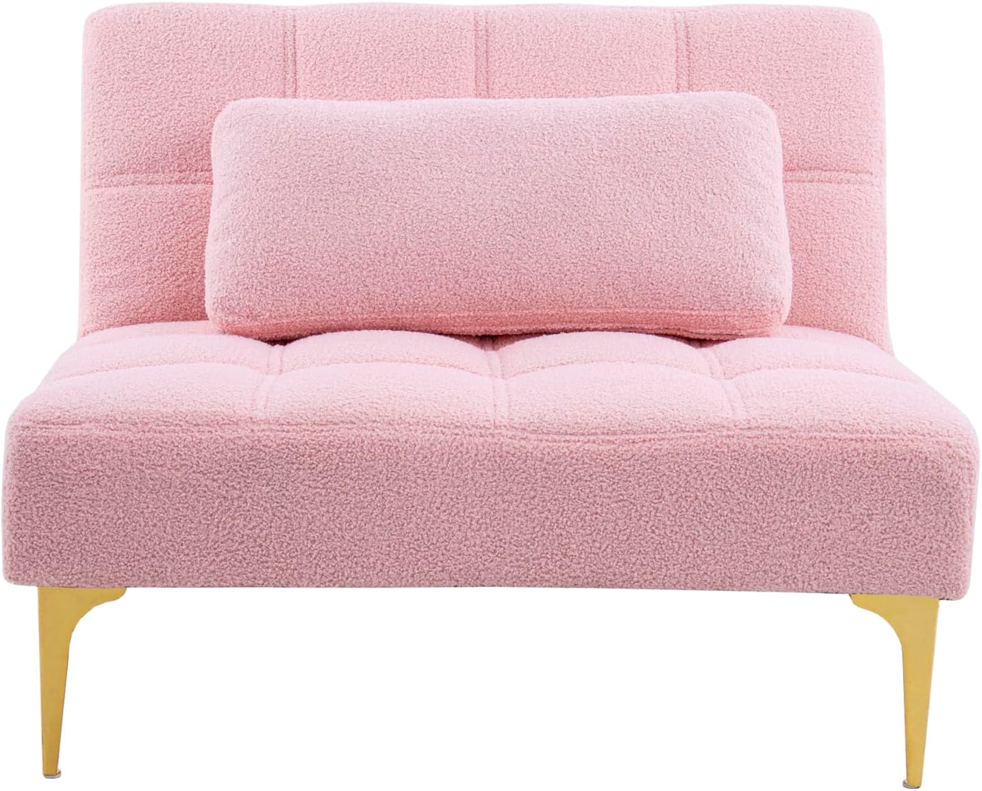 Furniture Comfy Couch Convertible Single Sofa Bed Futon with Gold Metal Legs in Teddy Fabric (Pink) - Compact and Stylish Sofas & Couches Sofas para sala