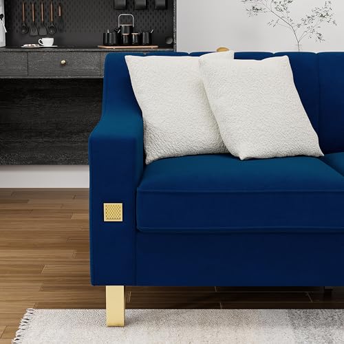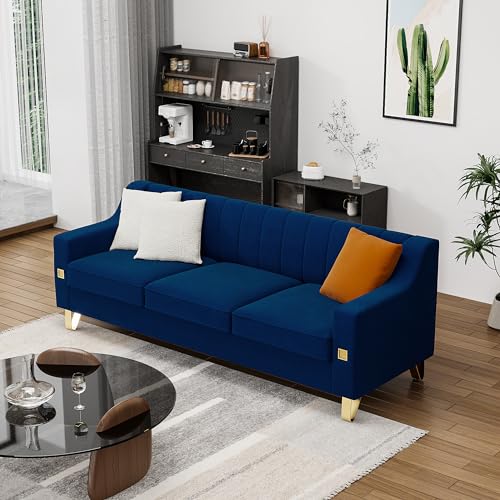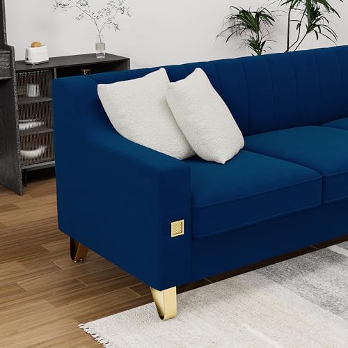 82'' L Modern 3 Seater Pink Velvet Sofa Couches with Metal Gold Legs for Living Room, Mid Century Classic Tufted Chesterfield Sofa with 3 Pillows for Apartment