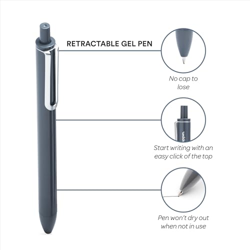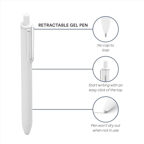 Poppin Retractable Gel Pens - Fine Point Pens for Journaling, 0.7mm Tip, Smooth Writing Gel Ink Pens with Metal Clip, Stylish Retractable Pens, 12 Pack of Pens (White with Black Ink)