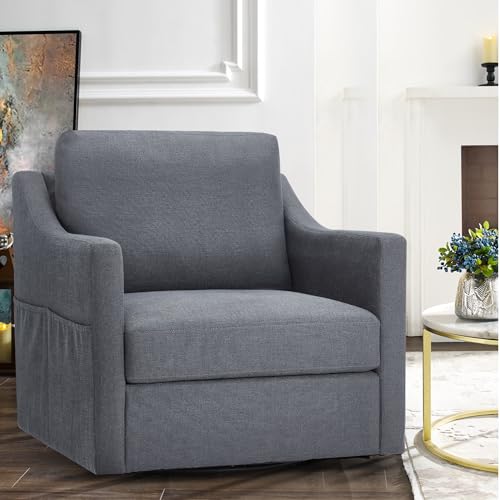 HOMREST Swivel Accent Chair,Linen Fabric Armchair Modern Chairs w/Removable Cover for Reception Living Room,Beige