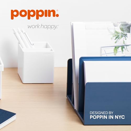 Poppin Drawer Organizer - Desk Drawer Organizer with 4 Compartments, File Cabinet Organizer fits Standard File Drawers, Sturdy Plastic, Multiple Colors Available (Slate Blue)