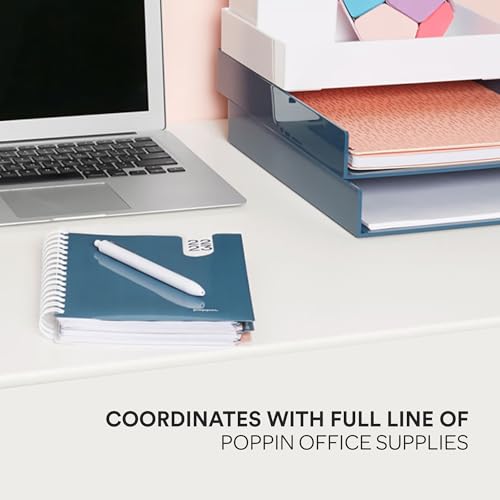 Poppin Stackable Small Accessory Tray - Modular Lacquer Desk Trays for Office Organization, Color-Coordinated Office Supplies for Desk (Slate Blue, Small Accessory)