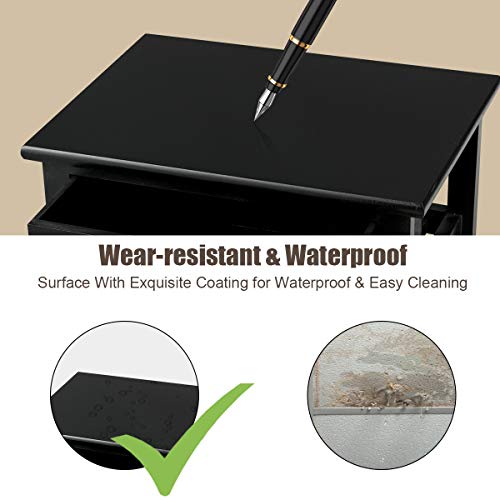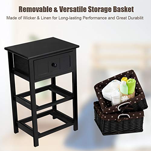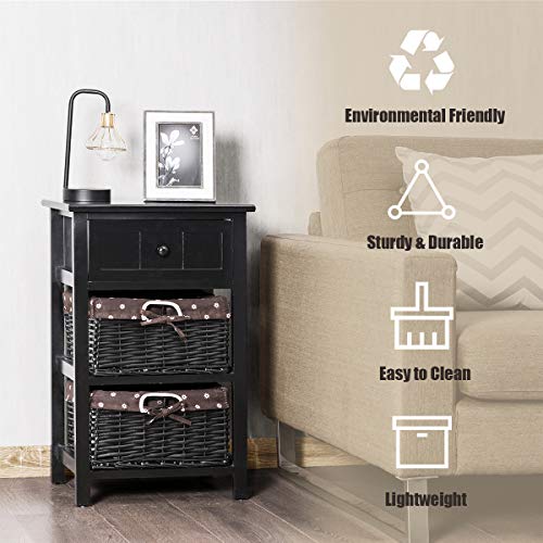 Giantex Nightstand with Drawers Wooden, W/ 2 Storage Baskets and Open Shelf for Bedroom, Bedside Sofa End Table (1, Black)