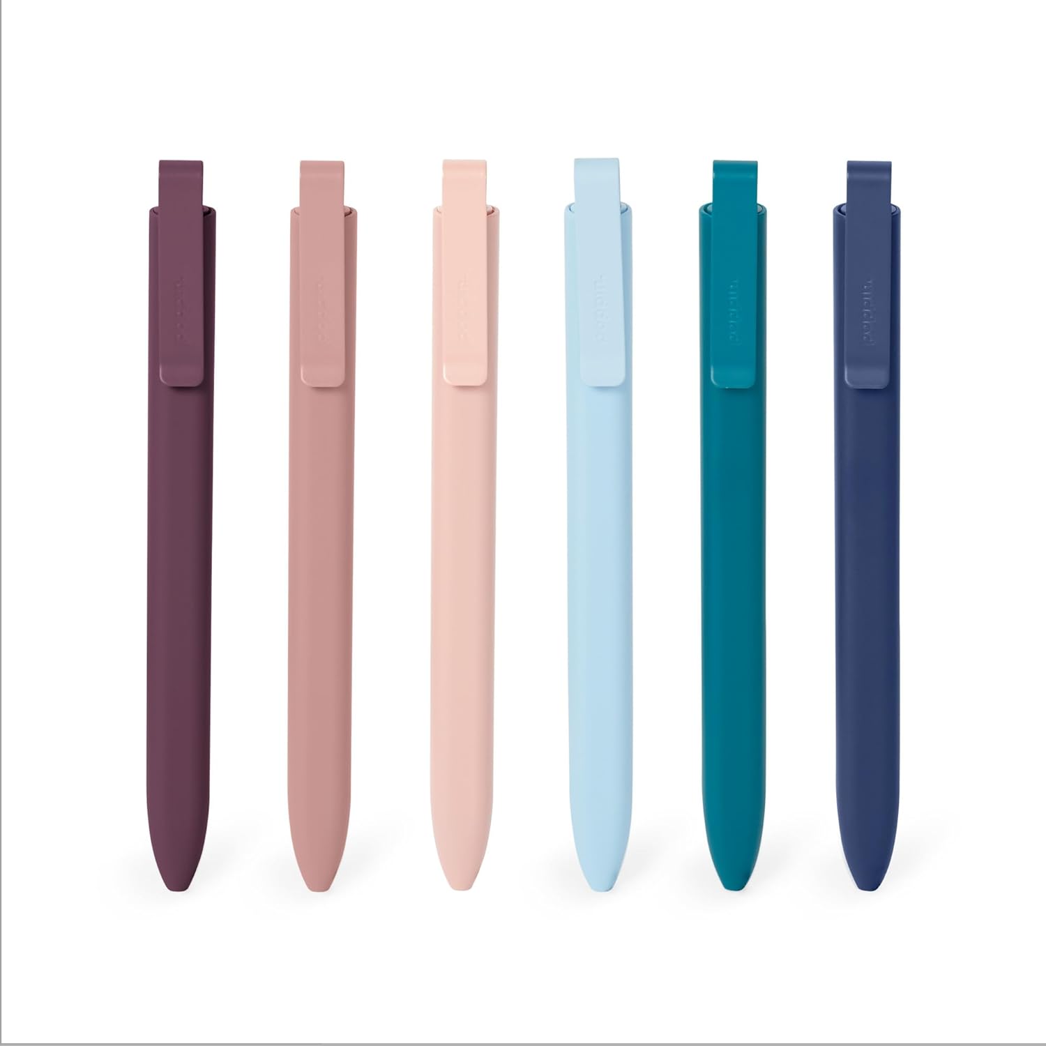 Poppin Flat Top Ballpoint Pens, Set of 12 Retractable Ballpoint Pens in Assorted Colors with Black Ink, Medium 1mm Tip, Unique Flat Top Design, Powder Coated Matte Finish
