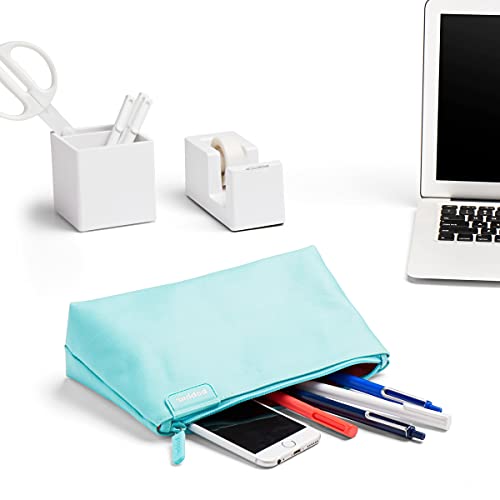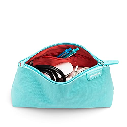 Poppin Pencil Case, Large Capacity Pencil Pouch with Zipper Closure, Sturdy Canvas with Contrast Lining, (Aqua, Small)
