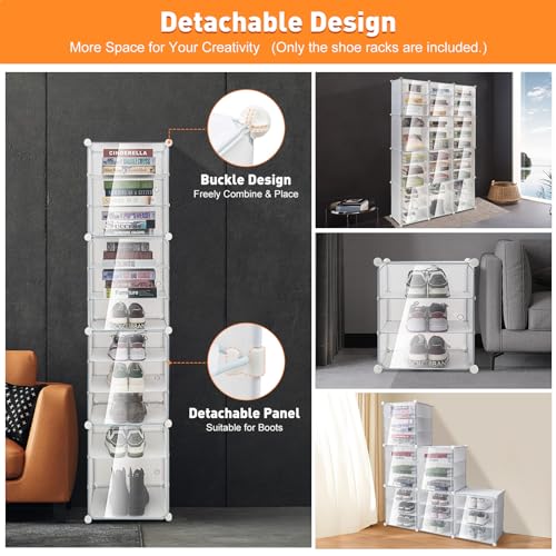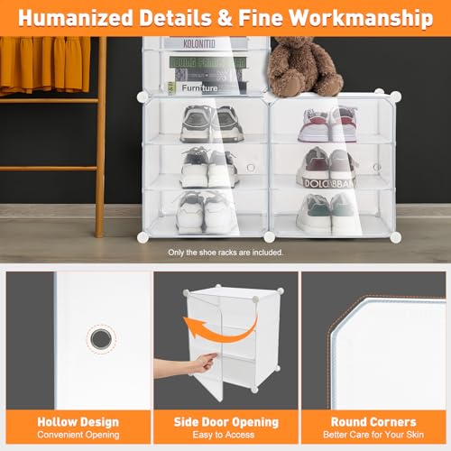 Portable Shoe Rack Organizer 12 Tier DIY Shoe Cabinet, 96 Pairs White Plastic Stackable Closet Shoe Box Storage Cabinet for Entryway, Bedroom and Hallway Shoe Cabinet w/Doors