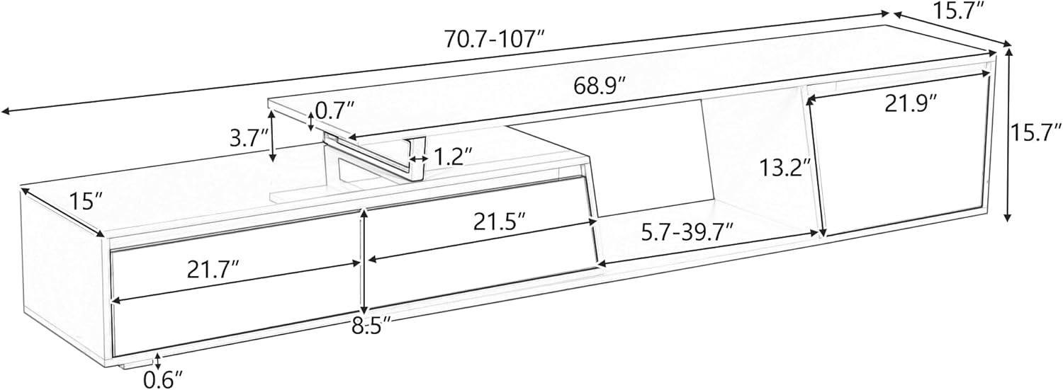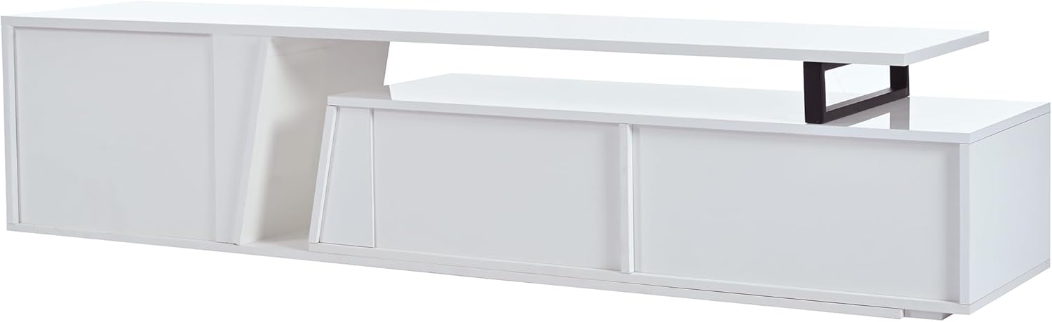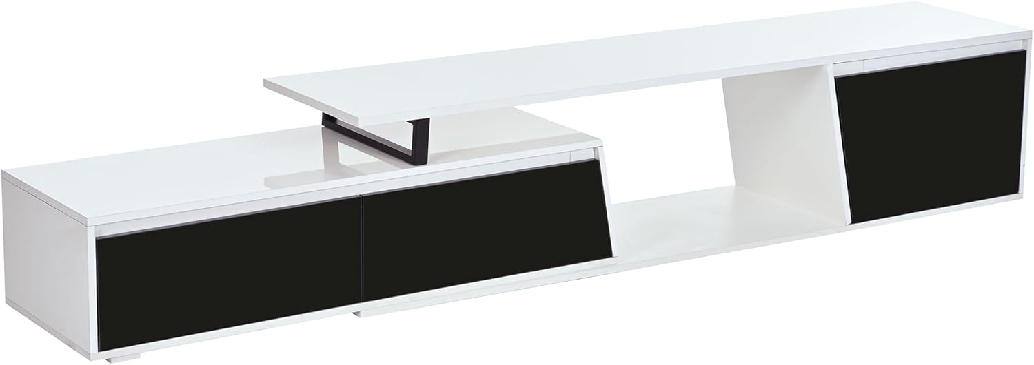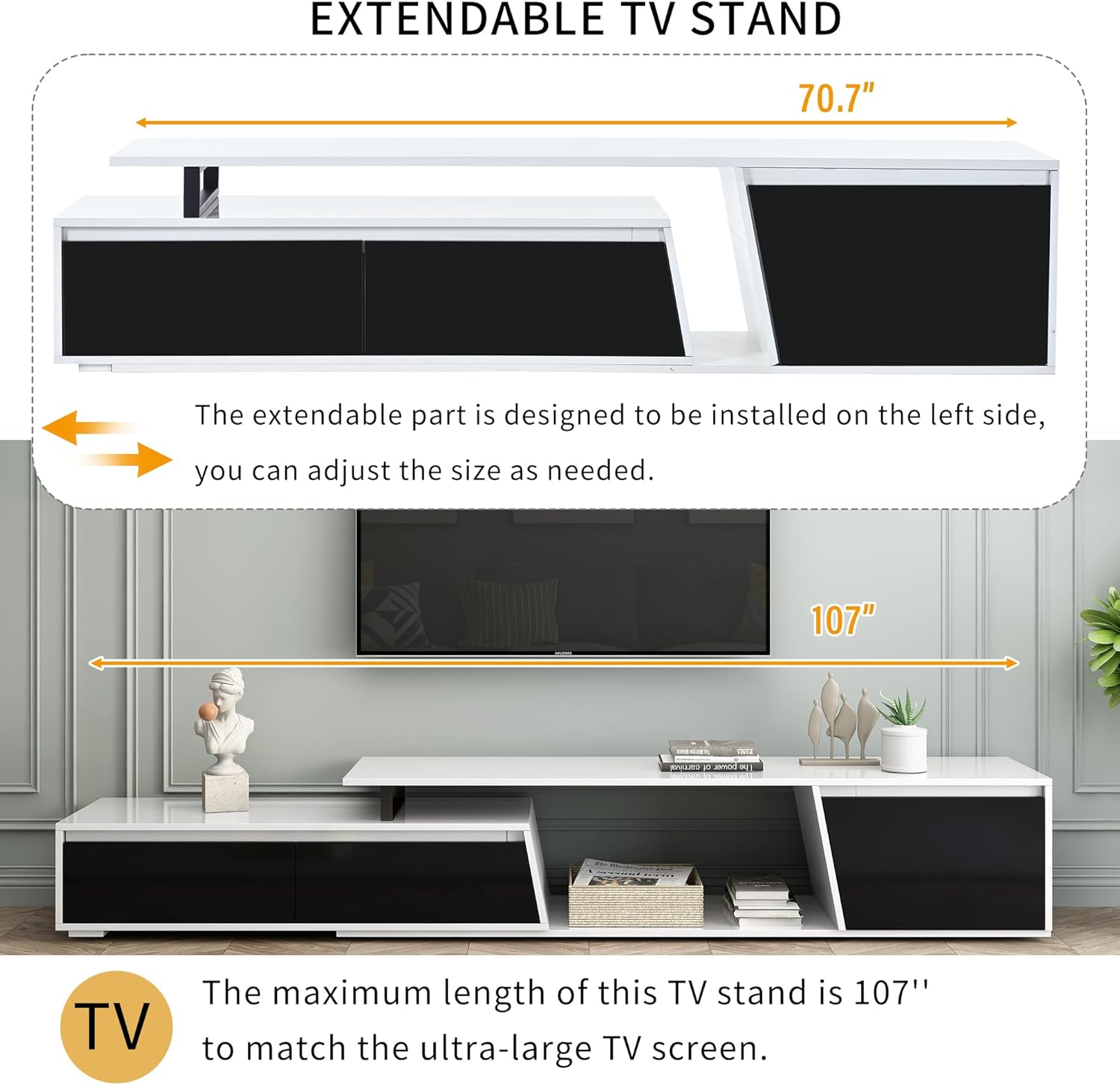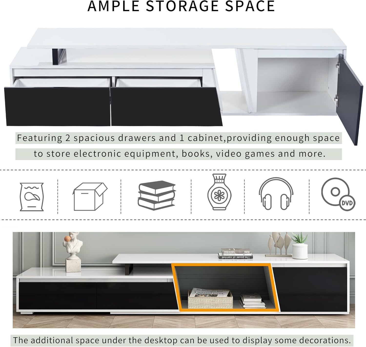 Extendable TV Stand for Televisions Up to 100'', Modern Minimalist Entertainment Center with 2 Drawers & Cabinet, Wood Media Console Storage Table for Living Room Bedroom Furniture, White