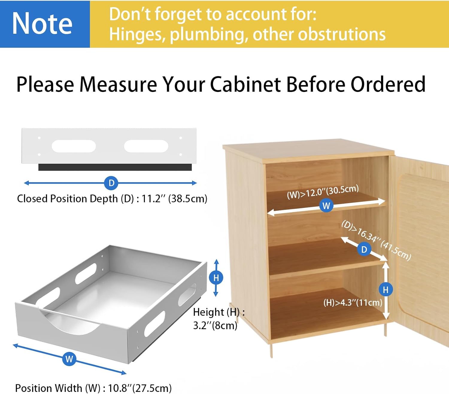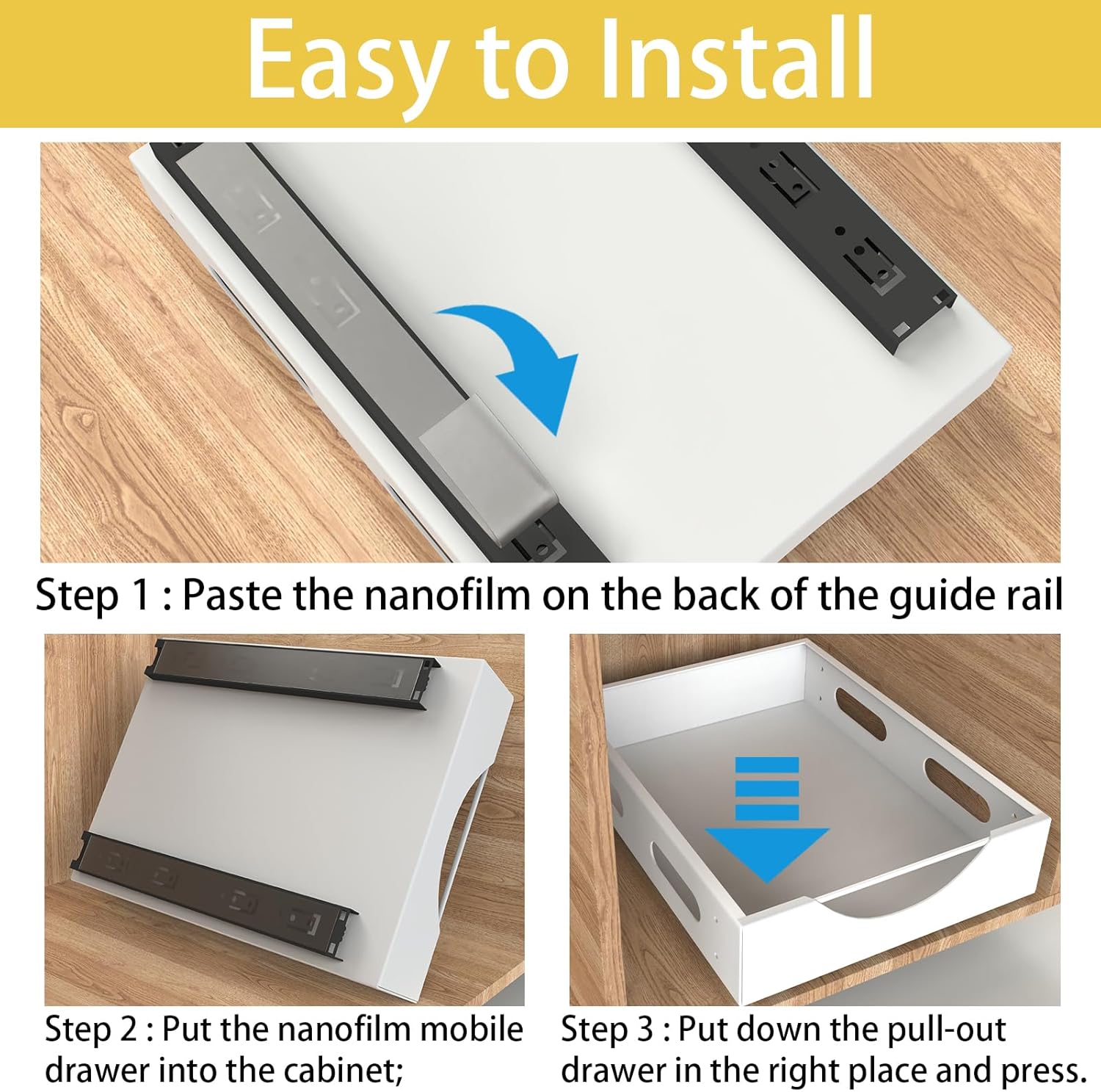 Yawinhe Collapsible Storage Box, Waterproof Storage Basket Bins, Pull Out Cabinet Organizer Fixed with Nano Adhesive Film, Suitable for Living Room, Bedroom, Kitchen, Balcony