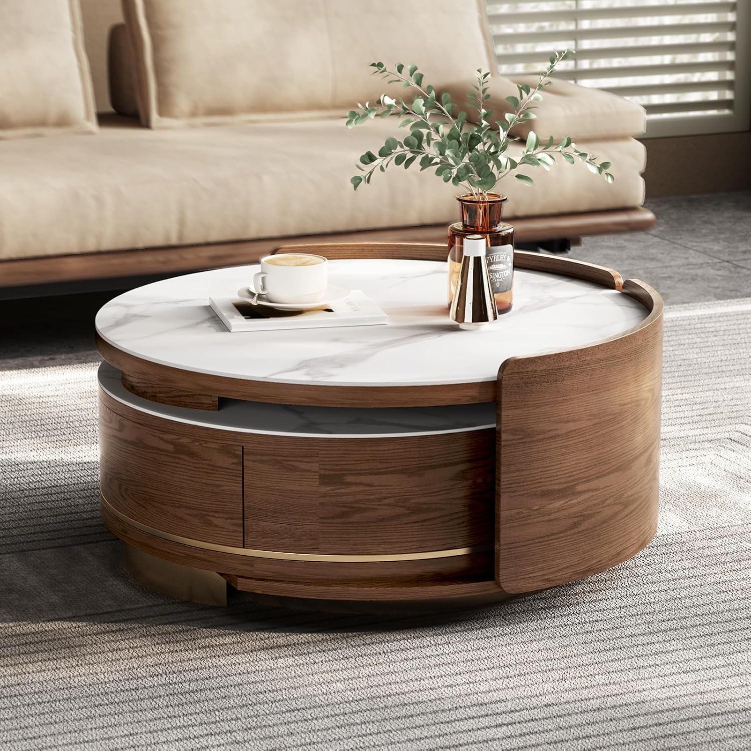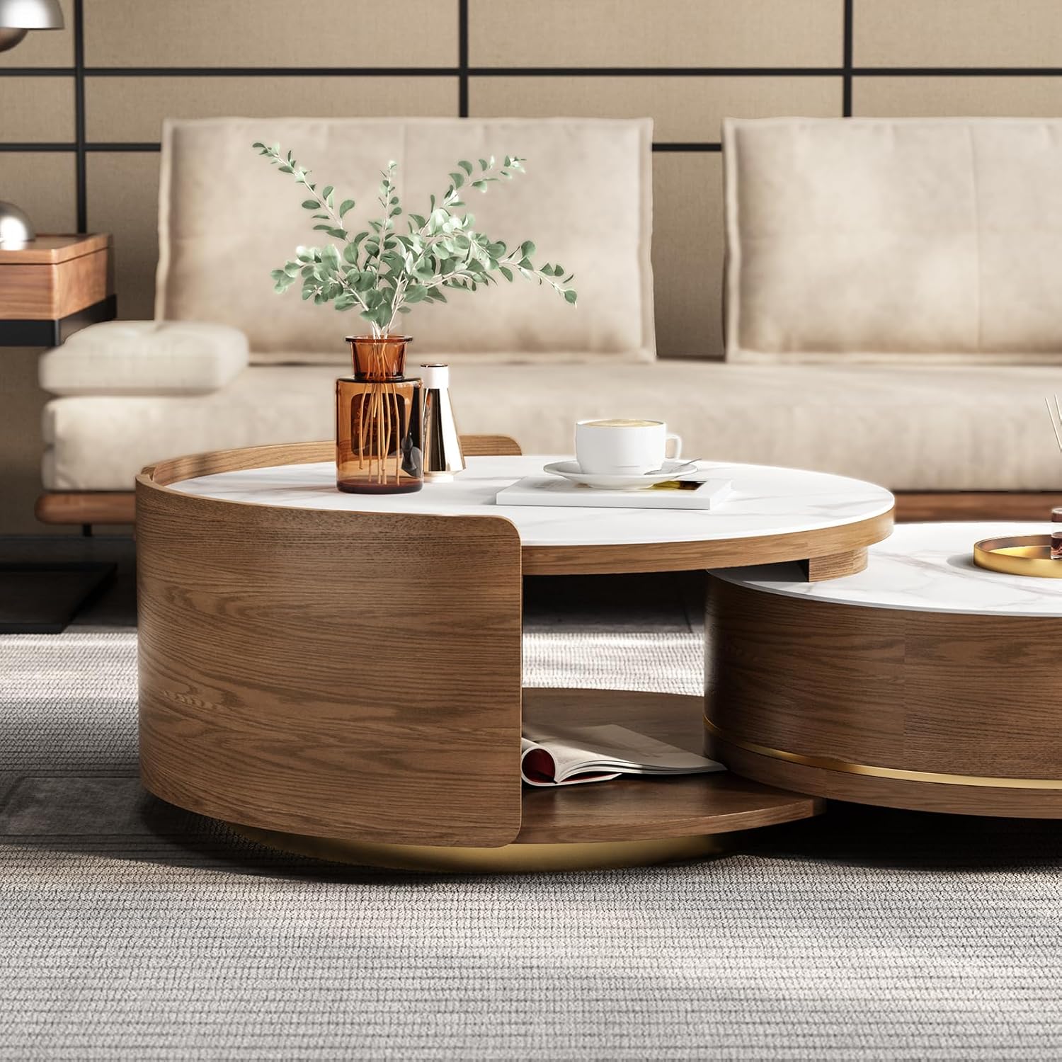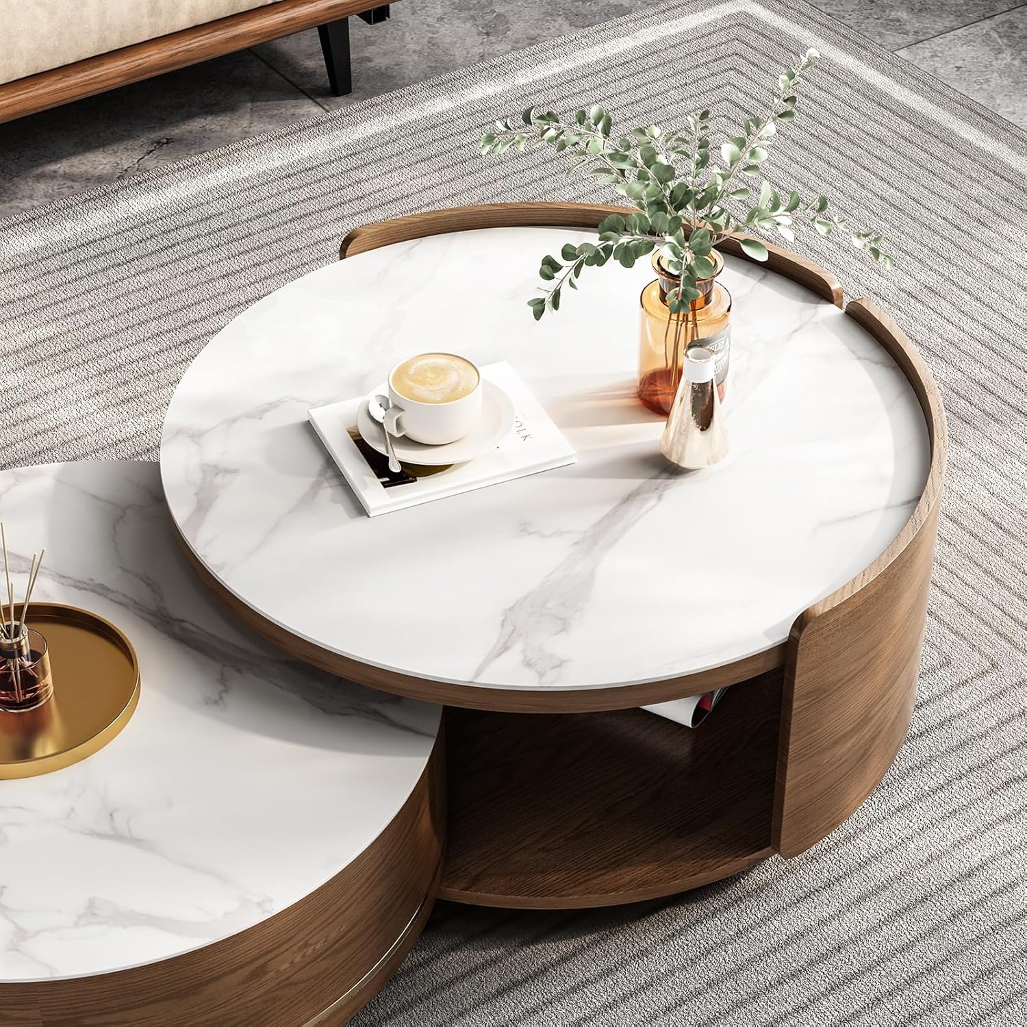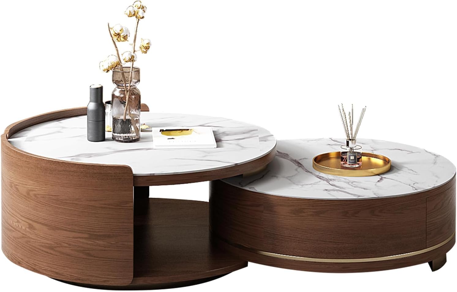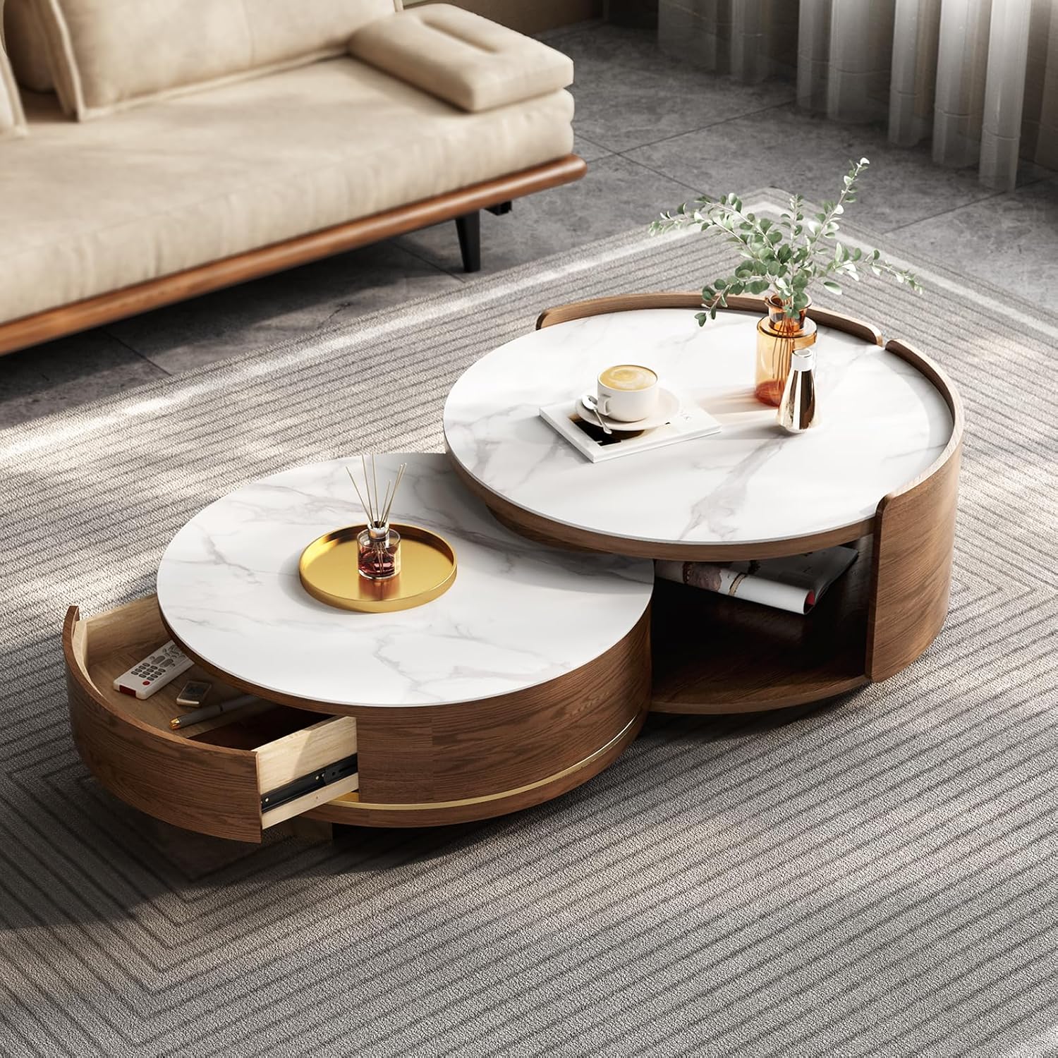 Round rock slab coffee table set, retractable thoughtful design, small house simple retractable size tea table