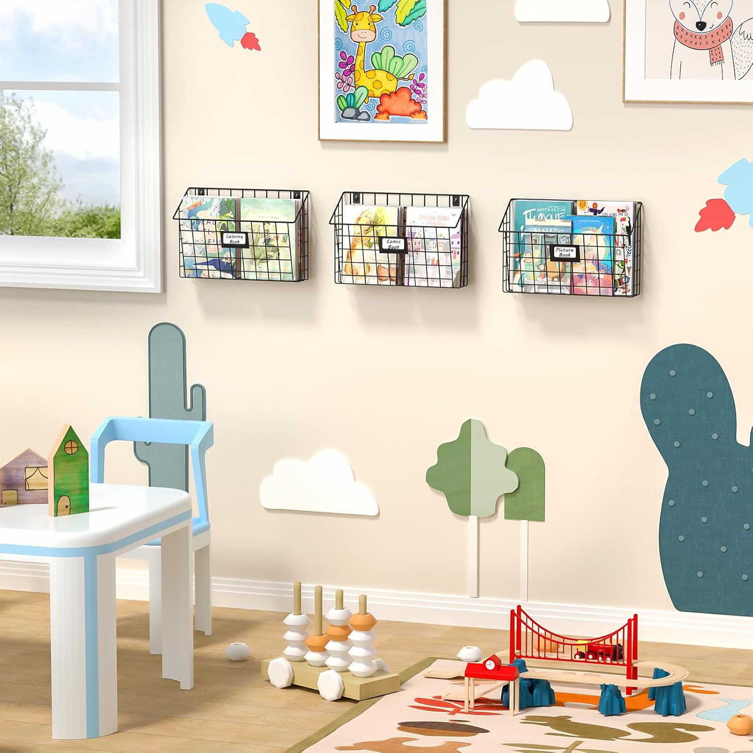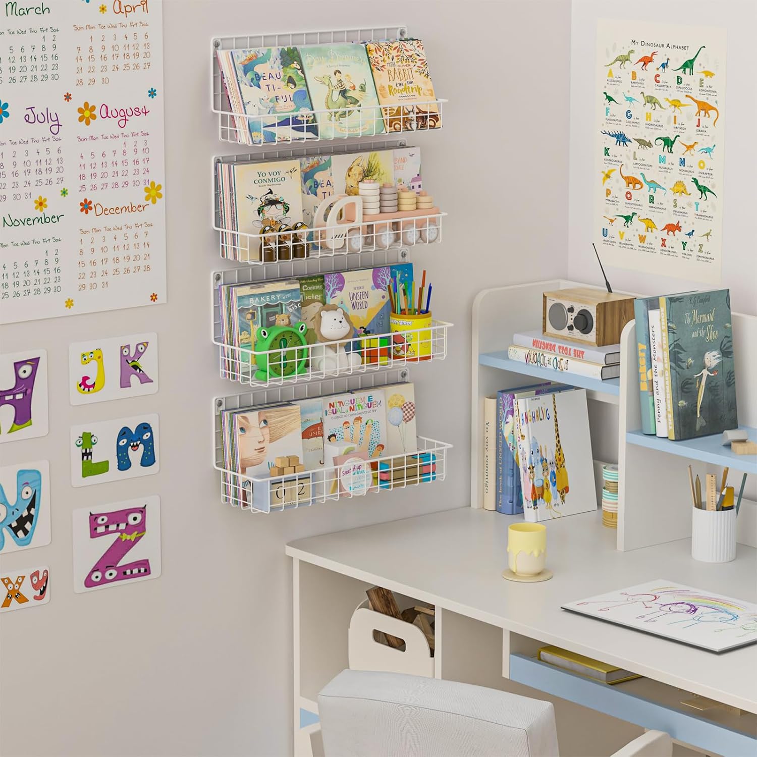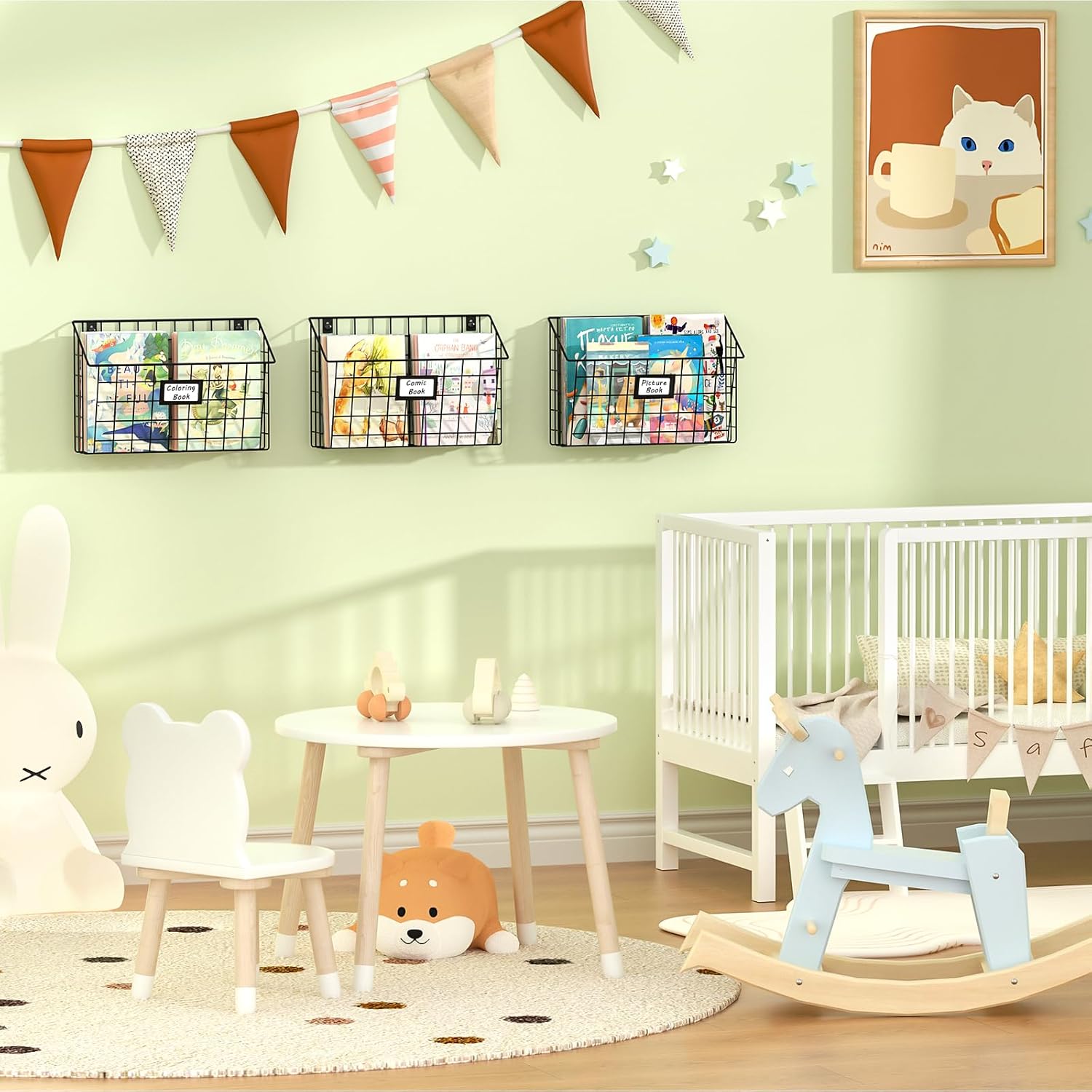 X-cosrack Wall Mounted Metal Kids Bookshelf, Floating Book Shelves for Kids Nursery Toddler Bedroom Classroom, Hanging Book Shelf Storage Organizer for Room Decor, Black&White