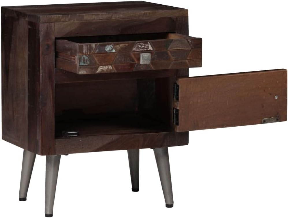 Bedside Cabinet Industrial Style, Side Cabinet, Plant,Telephone Stand,for Apartments, Houses, bedrooms,Living Rooms,with 1 Drawer and 1 Cabinet, Solid Reclaimed Wood 15.7"x11.8"x19.6"