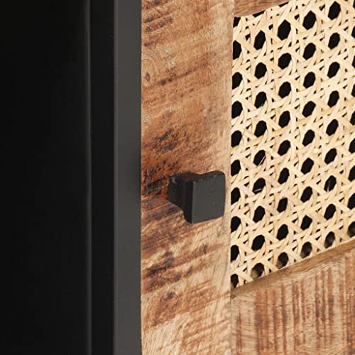 Coffee Table 35.4"x19.7"x13.8" Rough Mango Wood and Natural Cane,Rustic Mango Wood Coffee Table with Storage and Cane Door, 35.4" x 19.7" x 13.8" Accent Coffee Tables for Home & Kitchen