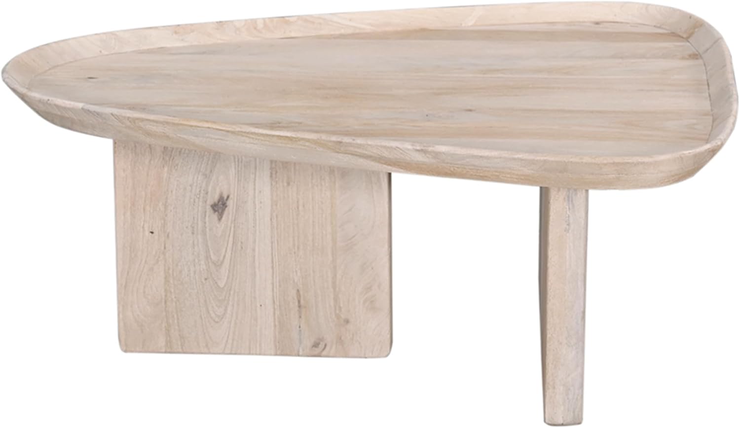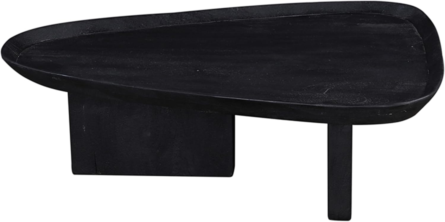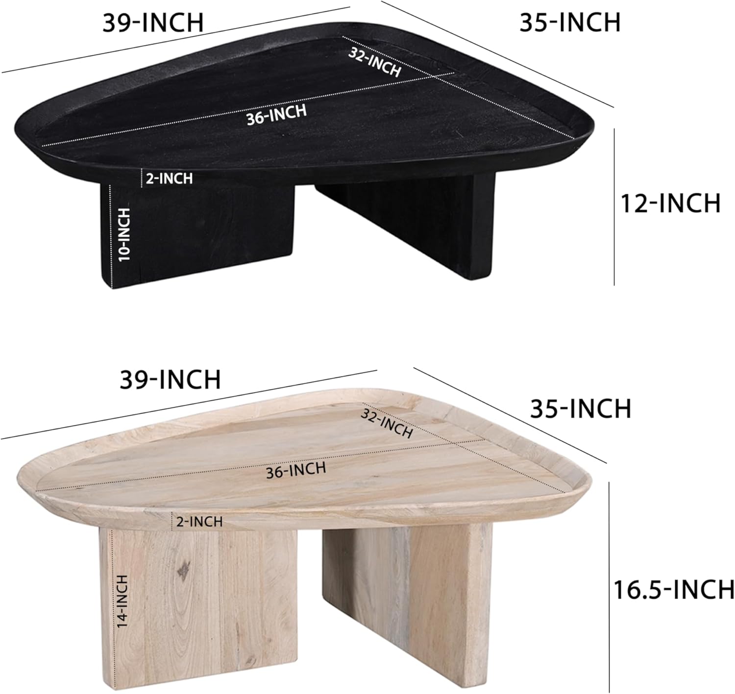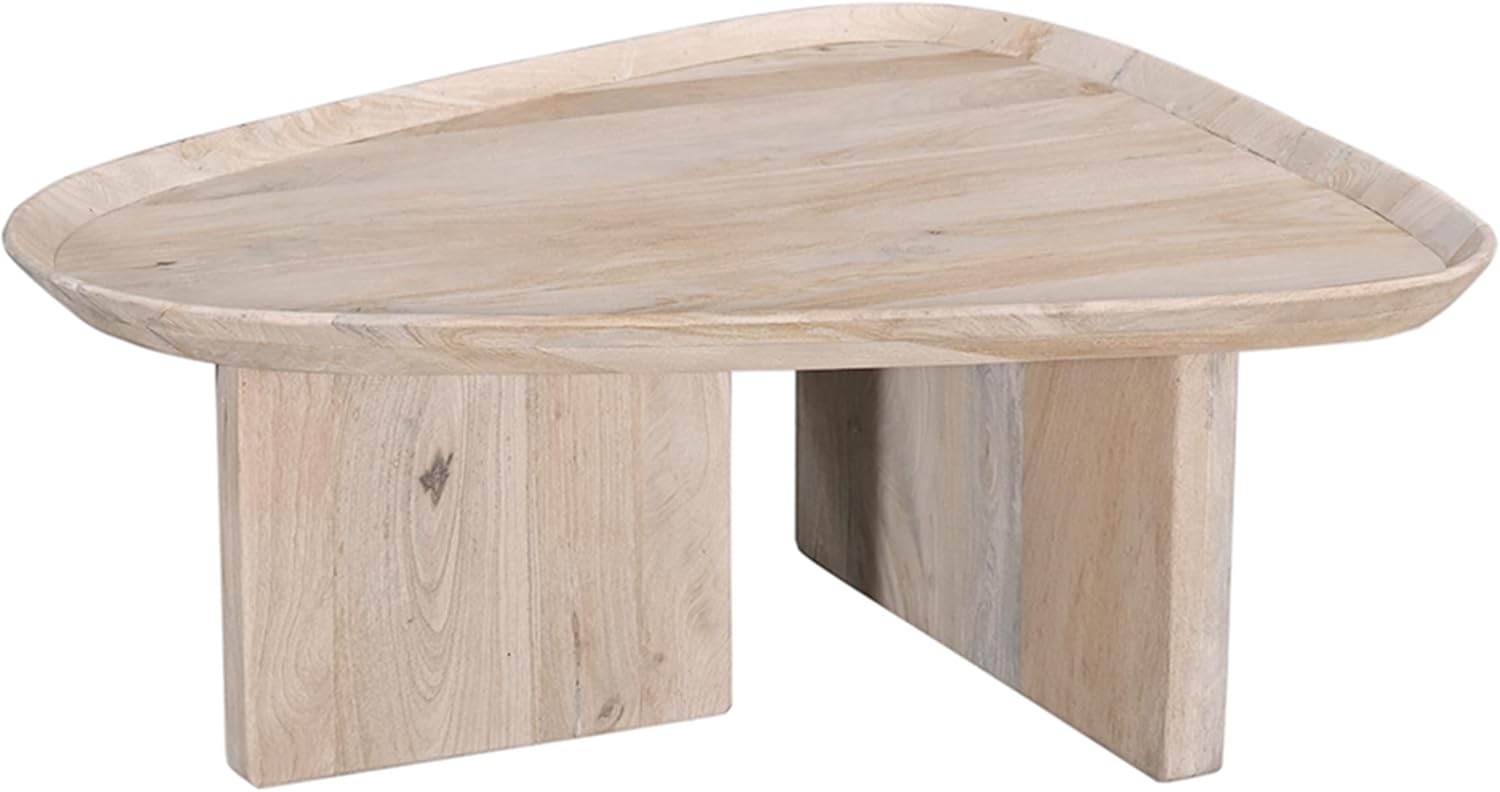 The Urban Port 39 Inch Coffee Table Set of 2, Mango Wood Triangular Tray Top, Washed White, Black