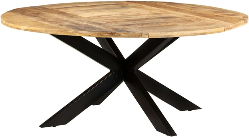 FAMIROSA Dining Table Round 68.9"x29.5" Rough Mango Wood