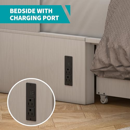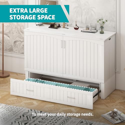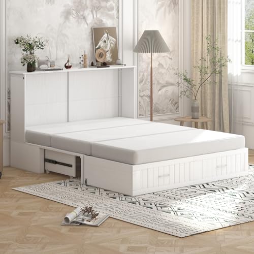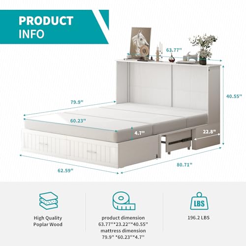 BALUS 64" W Murphy Bed Cabinet with Mattress,Murphy Bed Queen,Modern Muti-Functional Cube Cabinet Bed 2 Large Drawers&3 Level Folding Foam Mattress for Living Room/Apartment/Loft (Stone Grey)
