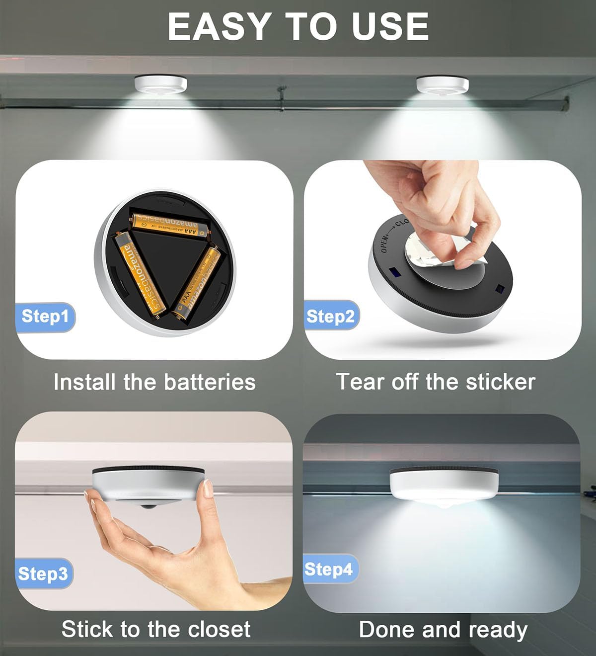 7Pack Tap Lights Battery Powered & 6Pack Motion Sensor Lights for Closet Cabinet Bedroom Stair Hallway