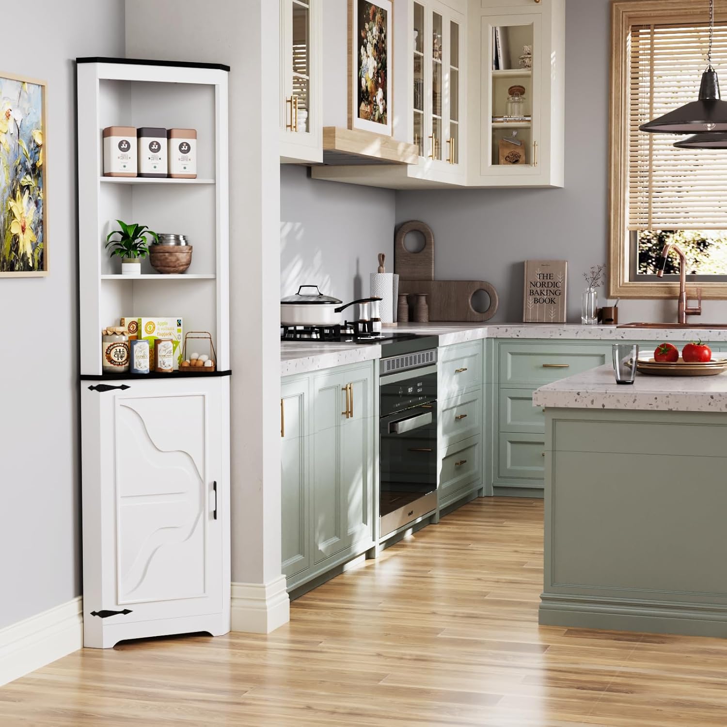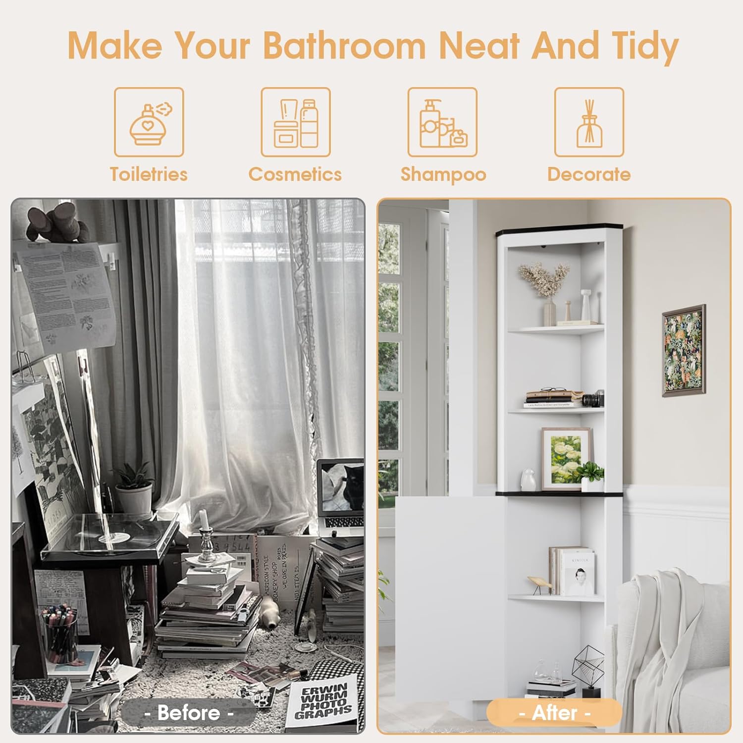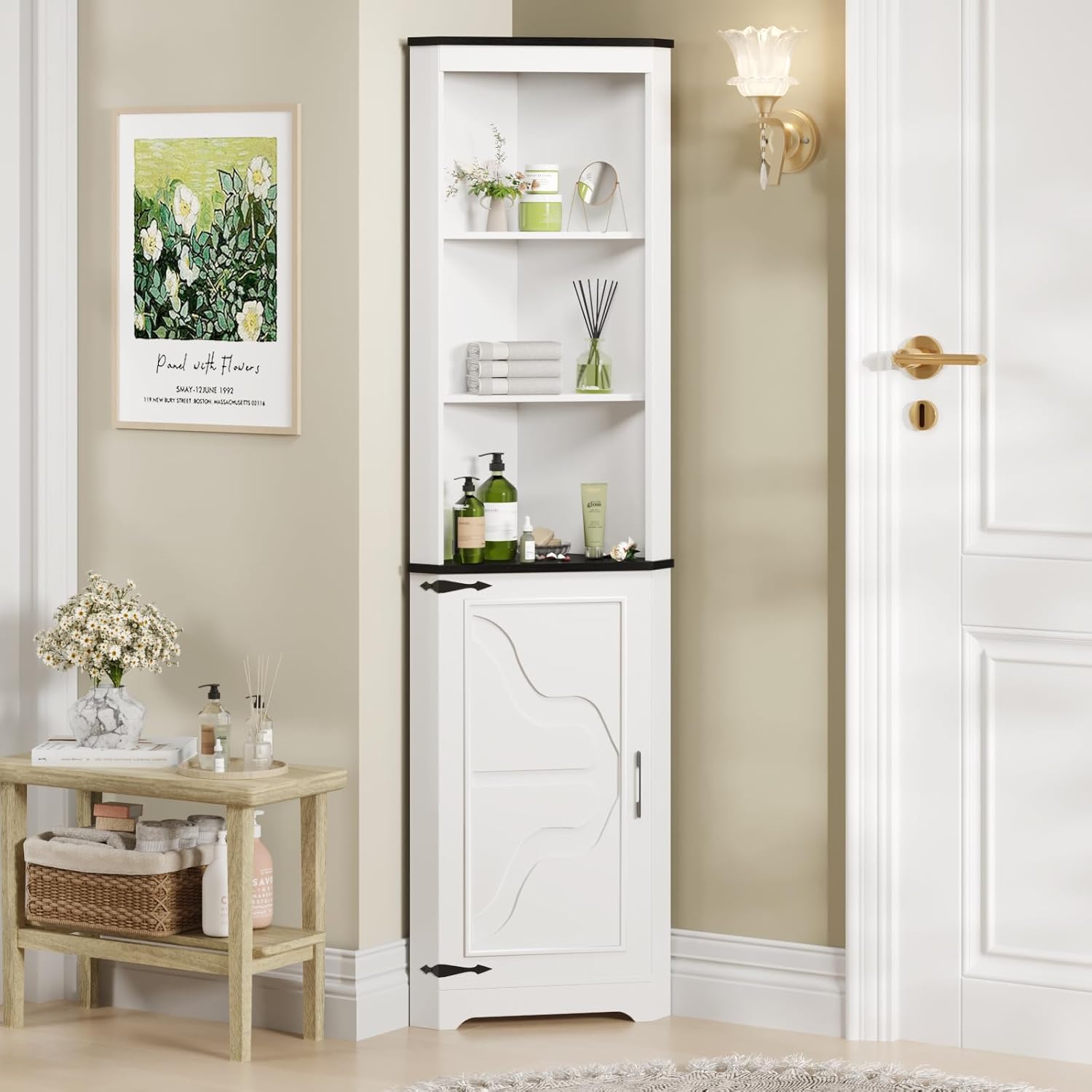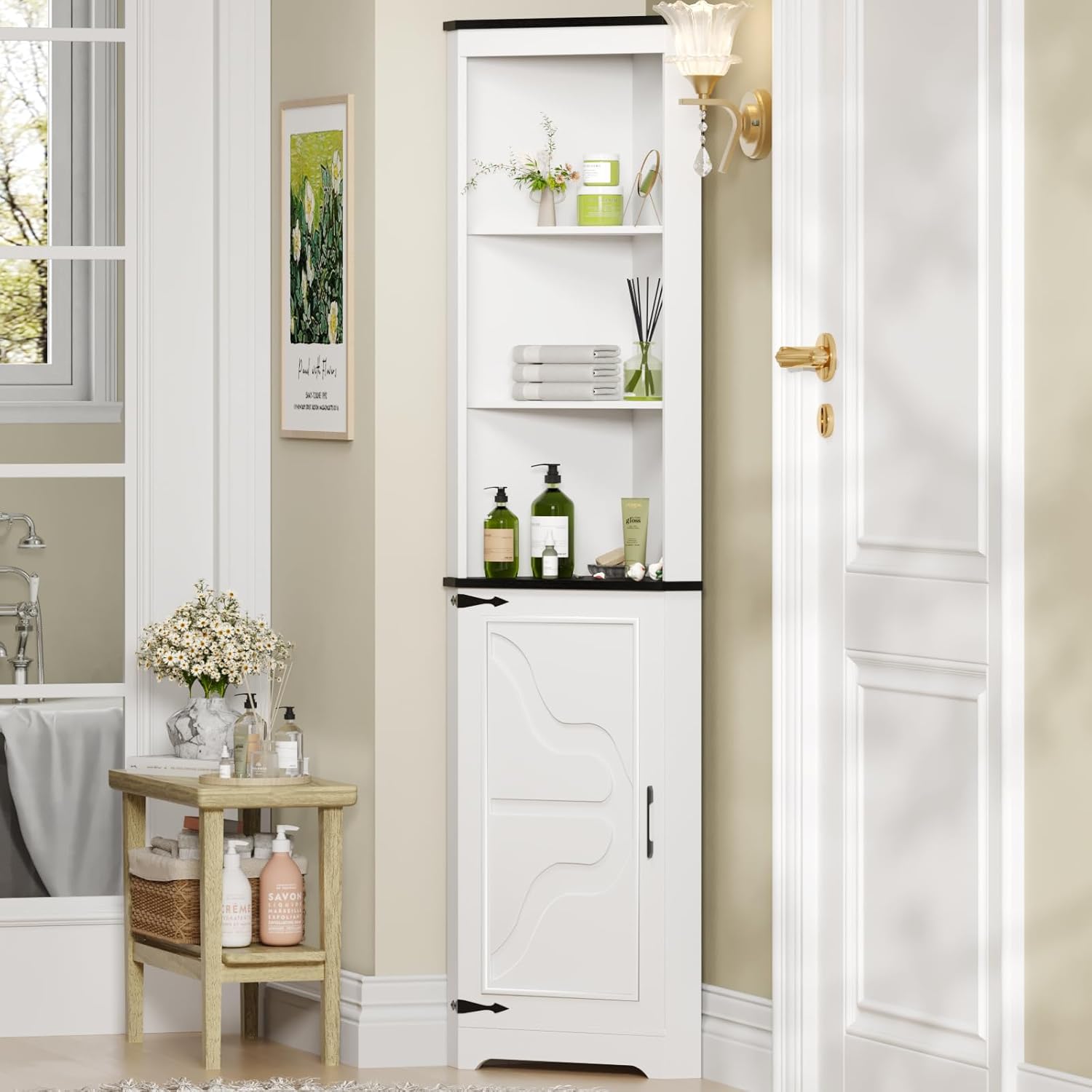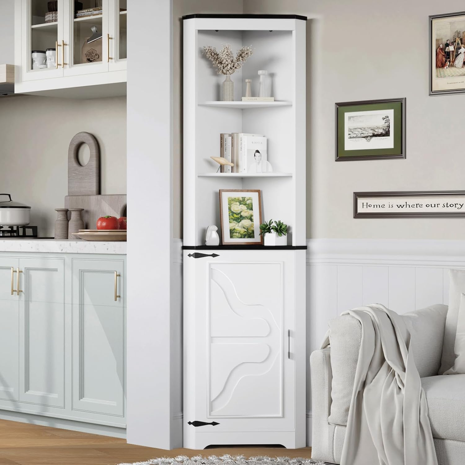 Corner Cabinet, Corner Shelf With 1 Doors and 2 Adjustable Shelves,Side Free Standing Storage Organizer Farmhouse Home Furniture For Multifunction in Living Room, Bathroom, Hallway, Kitchen, Bedroom