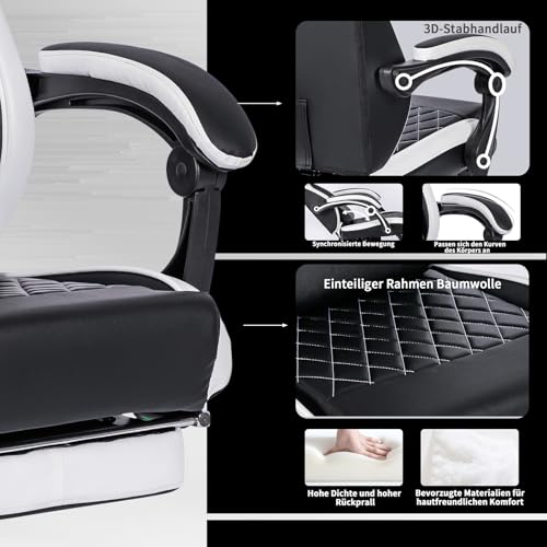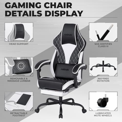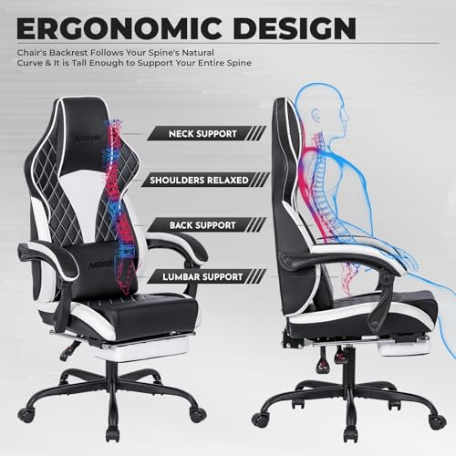 Gaming Chair, Ergonomic Computer Gamer Chair, Gaming Chairs for Adult with Massage Lumbar, Office Video Game Chair with Adjustable Height & Backrest (Beige Blue)