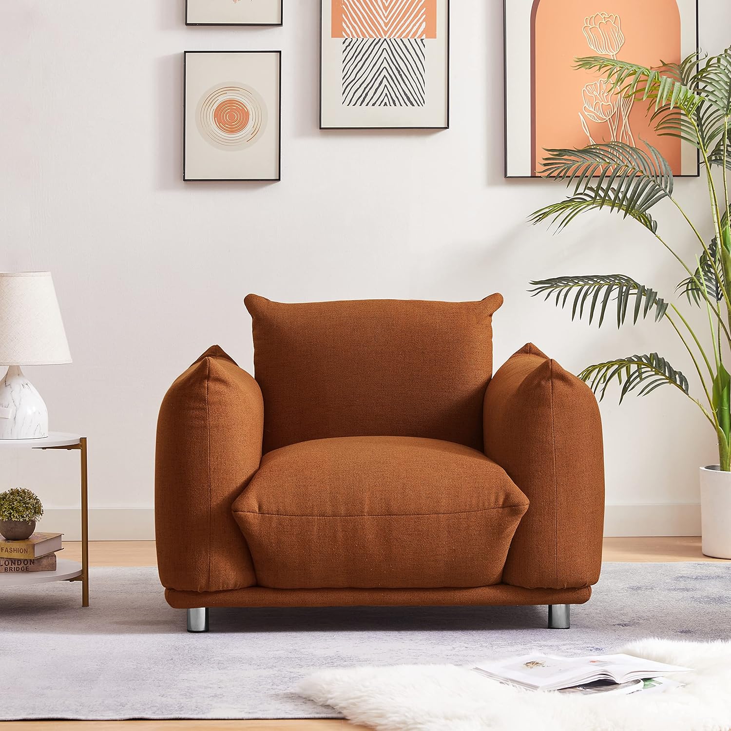 Accent Chair Cotton Linen Single Sofa 42" W Accent Chair for Bedroom Living Room Apartment, Rust Red