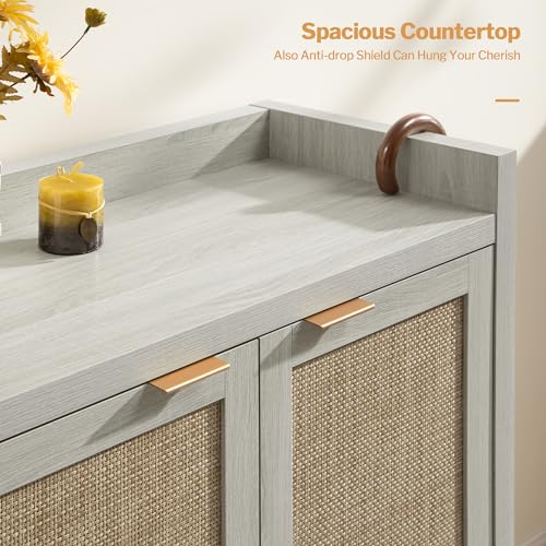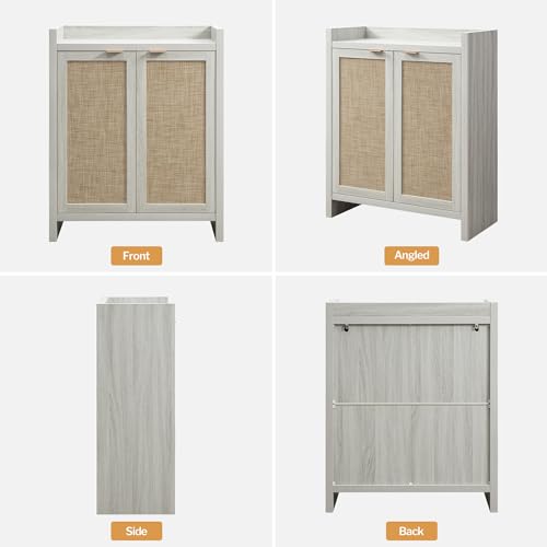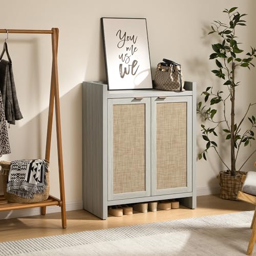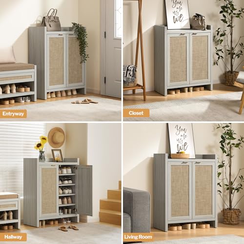 SICOTAS Shoe Cabinet Set of 2, Large Capacity Shoe Storage Organizer Cabinet, Tall Rattan Shoe Cabinet with Doors and Shelves, 6-Tier Farmhouse Boho Wood Storage Cabinet for Entryway Hallway Bedroom