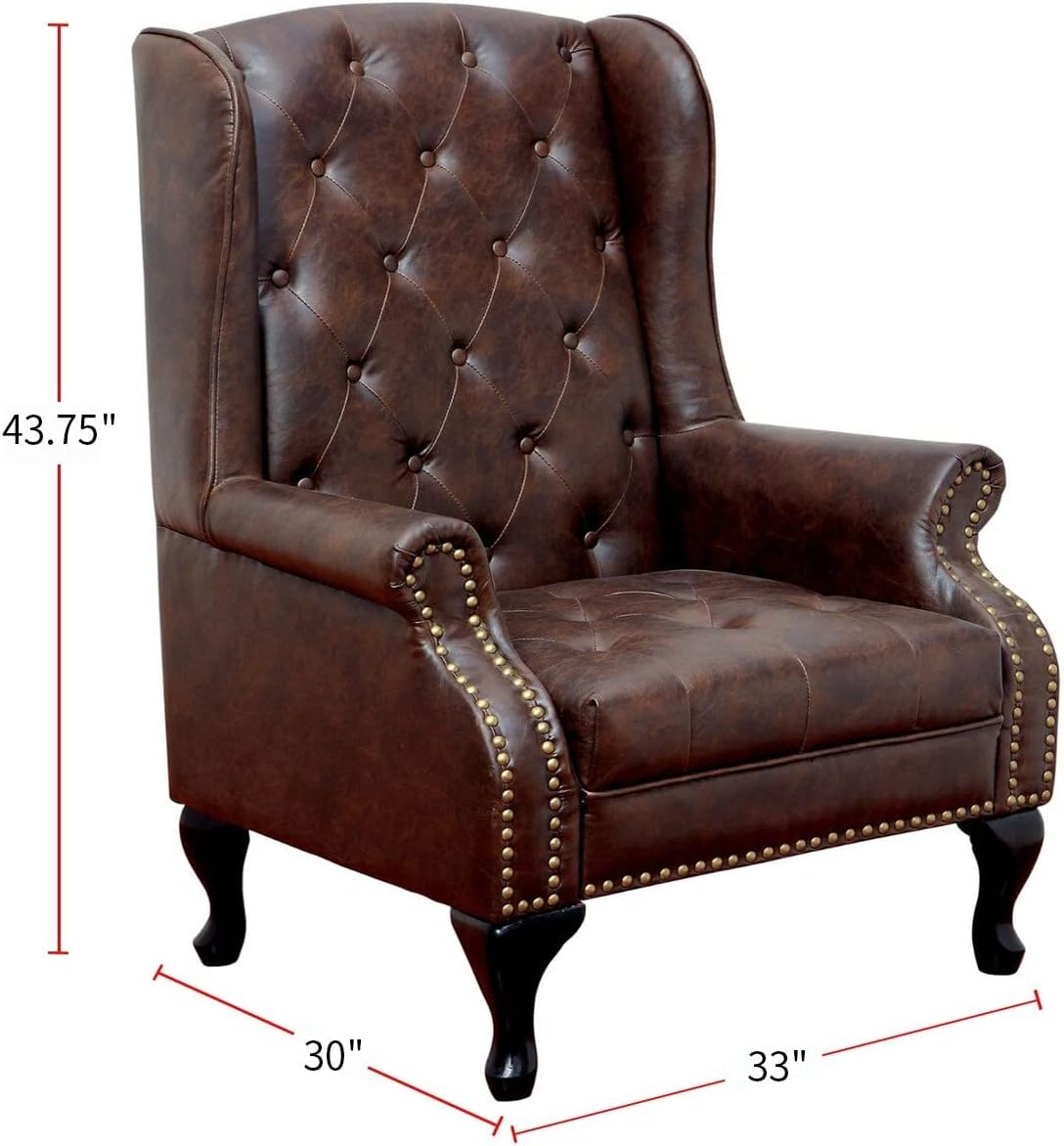 Leatherette Accent Chair in Rustic Brown Solid Traditional Leather